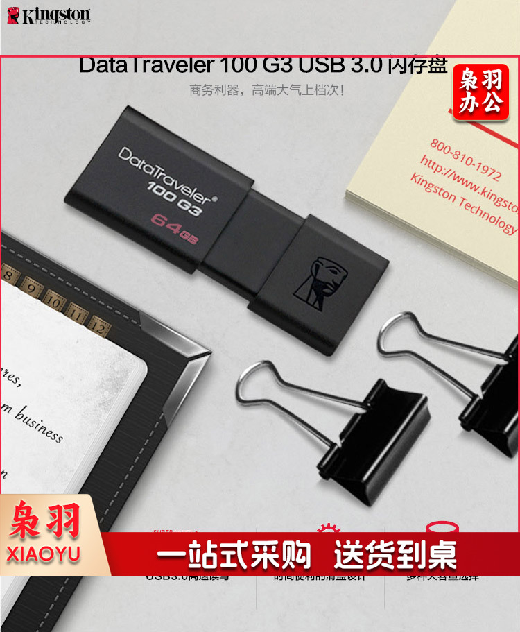 金士顿 Kingston DT100G3 64GB USB3.0 U盘 黑色 滑盖设计