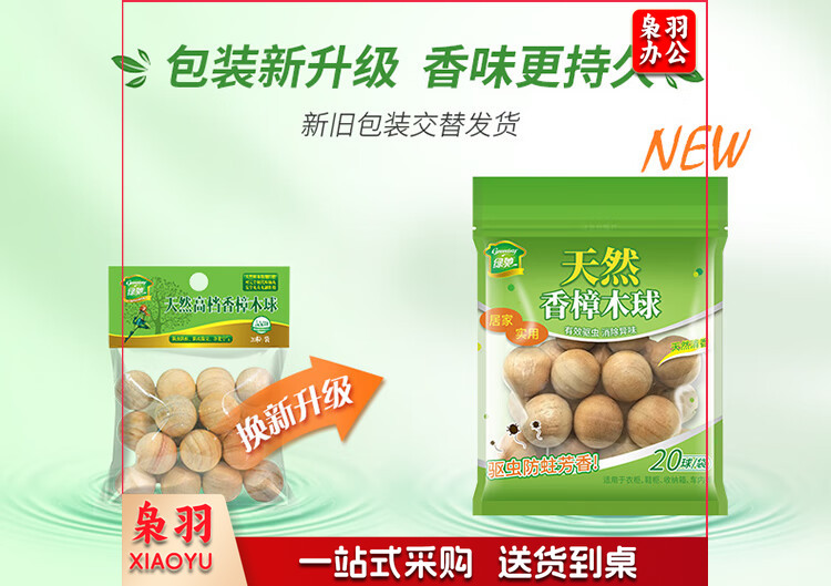 绿驰 天然香樟木球 除味驱虫防霉防蛀防潮块 替代樟脑丸 20粒/袋*1袋装