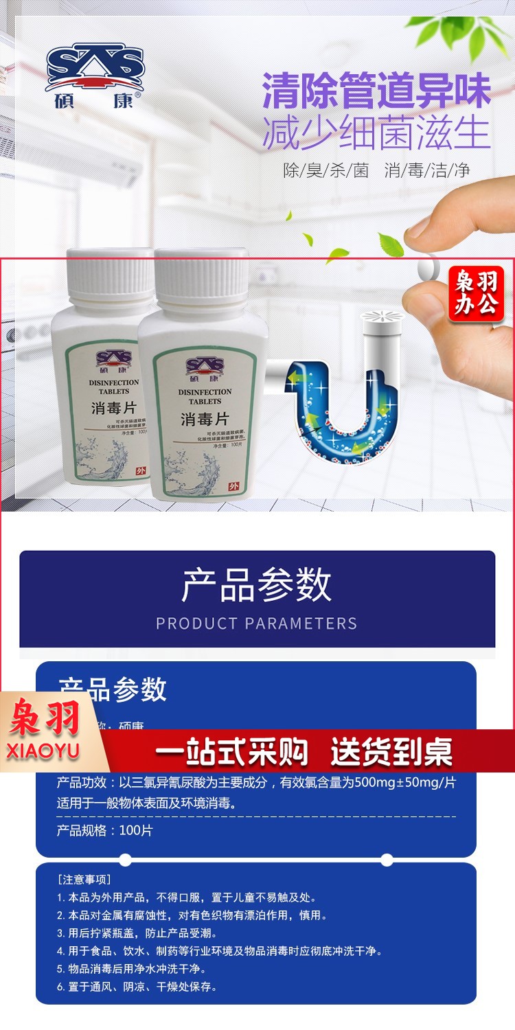 硕康 消毒片100片装 三氯异氰尿酸消毒片泡腾片 80瓶/箱