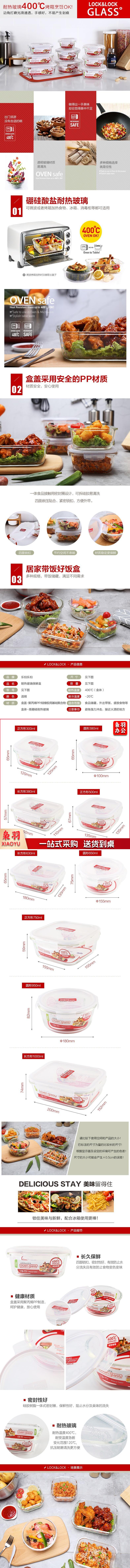 乐扣乐扣 950ml 耐热玻璃保鲜盒 微波炉烤箱便当 圆形饭盒