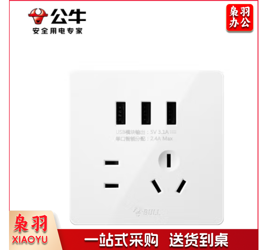 公牛(BULL)开关插座 G12系列 五孔带3位USB插座86型插座面板G12E536S 白色