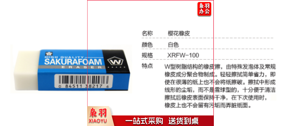 日本樱花(SAKURA)橡皮擦学生考试美术绘图 XRFW-100中号单块