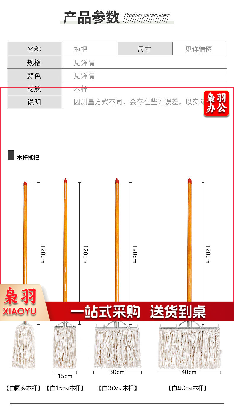 【白圆头木杆】木杆拖把棉线大堂老式墩布尘推拖布工厂 物业吸水拖把