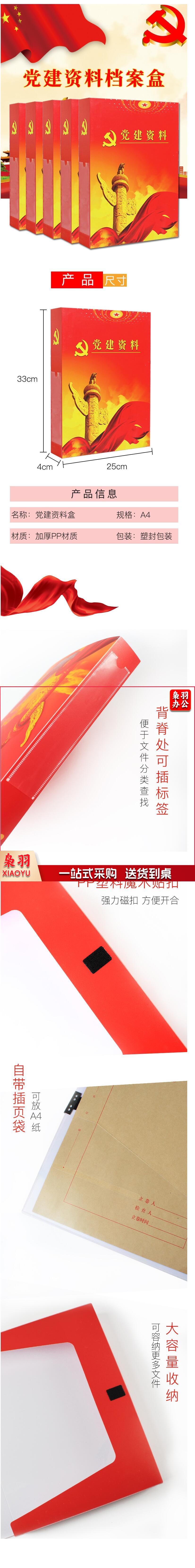 党建档案盒 红色塑料党建文件盒 33*25CM 侧宽40mm 加厚塑料文件资料盒