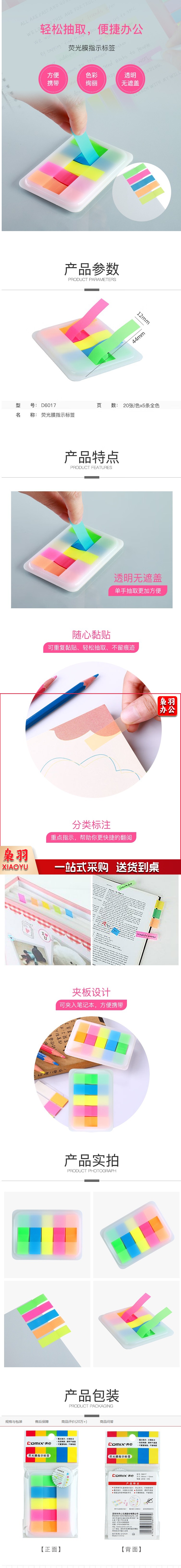 齐心(Comix)荧光膜索引标签指示贴/荧光贴/便签条/便签纸/透明便利贴(44x12mm)20张*5色 D6017