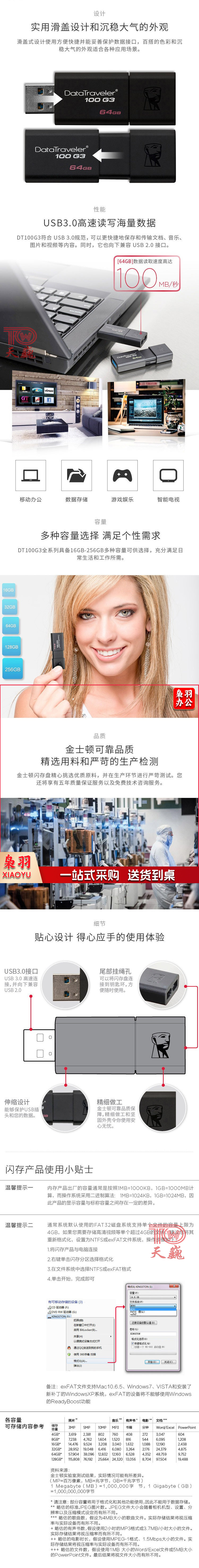 金士顿(Kingston)64G DT100G3系统 USB3.0 优盘 高速U盘