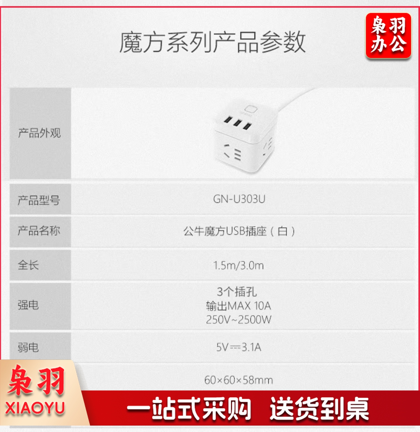 公牛(BULL) GN-U303U 魔方智能USB插座 插线板/插排/排插/接线板/拖线板 白色魔方USB插座全长1.5米