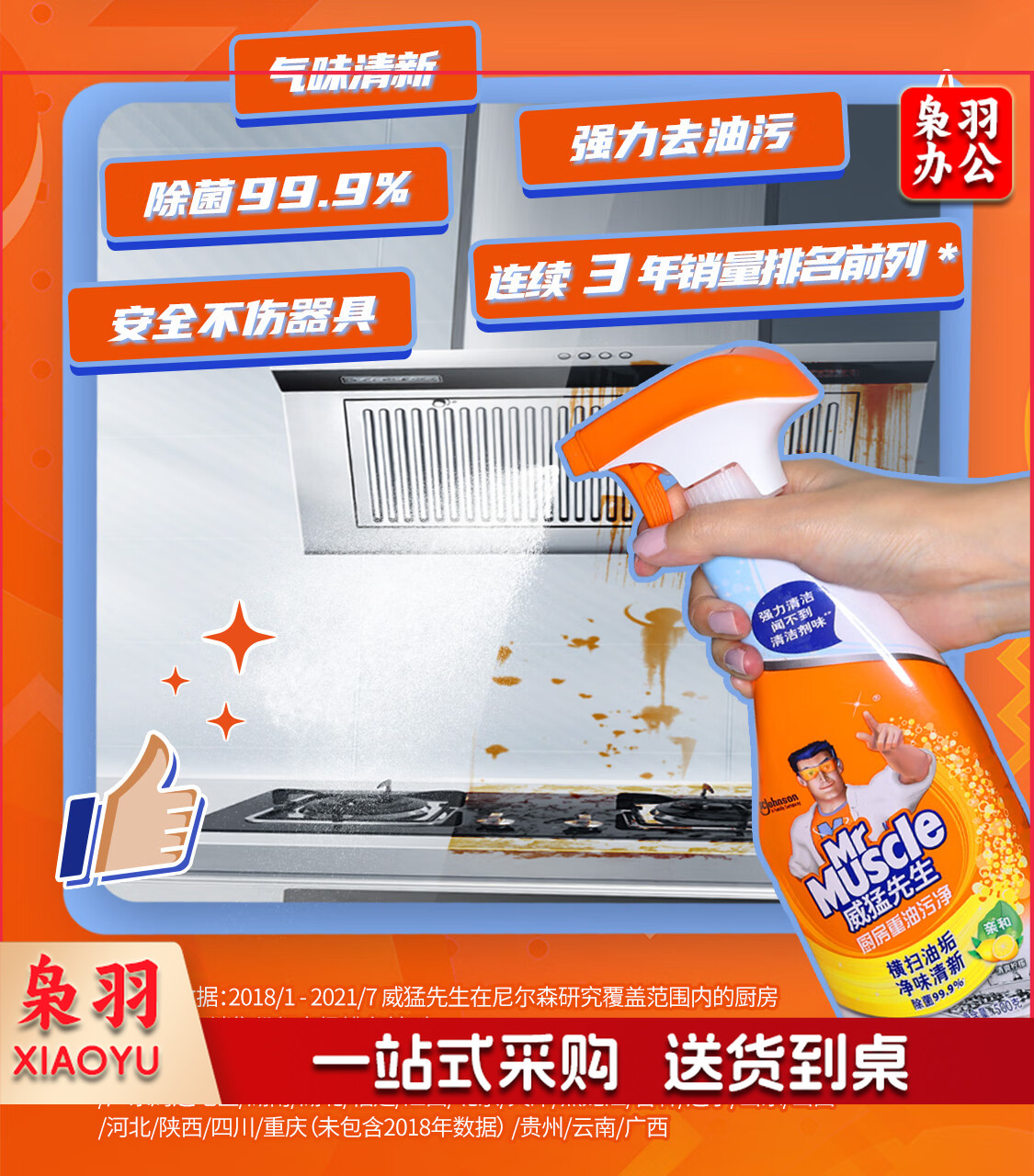 威猛先生(Mr Muscle) 油污清洁剂 455g+455g替换装 柑橘香 厨房重油污净