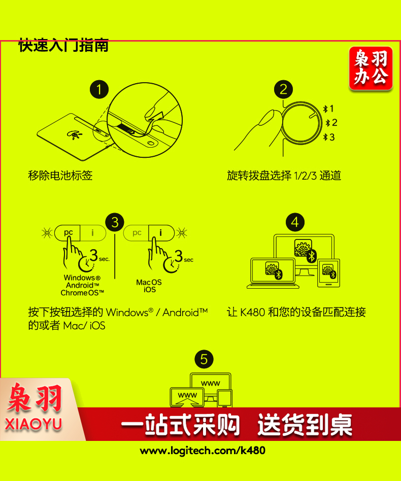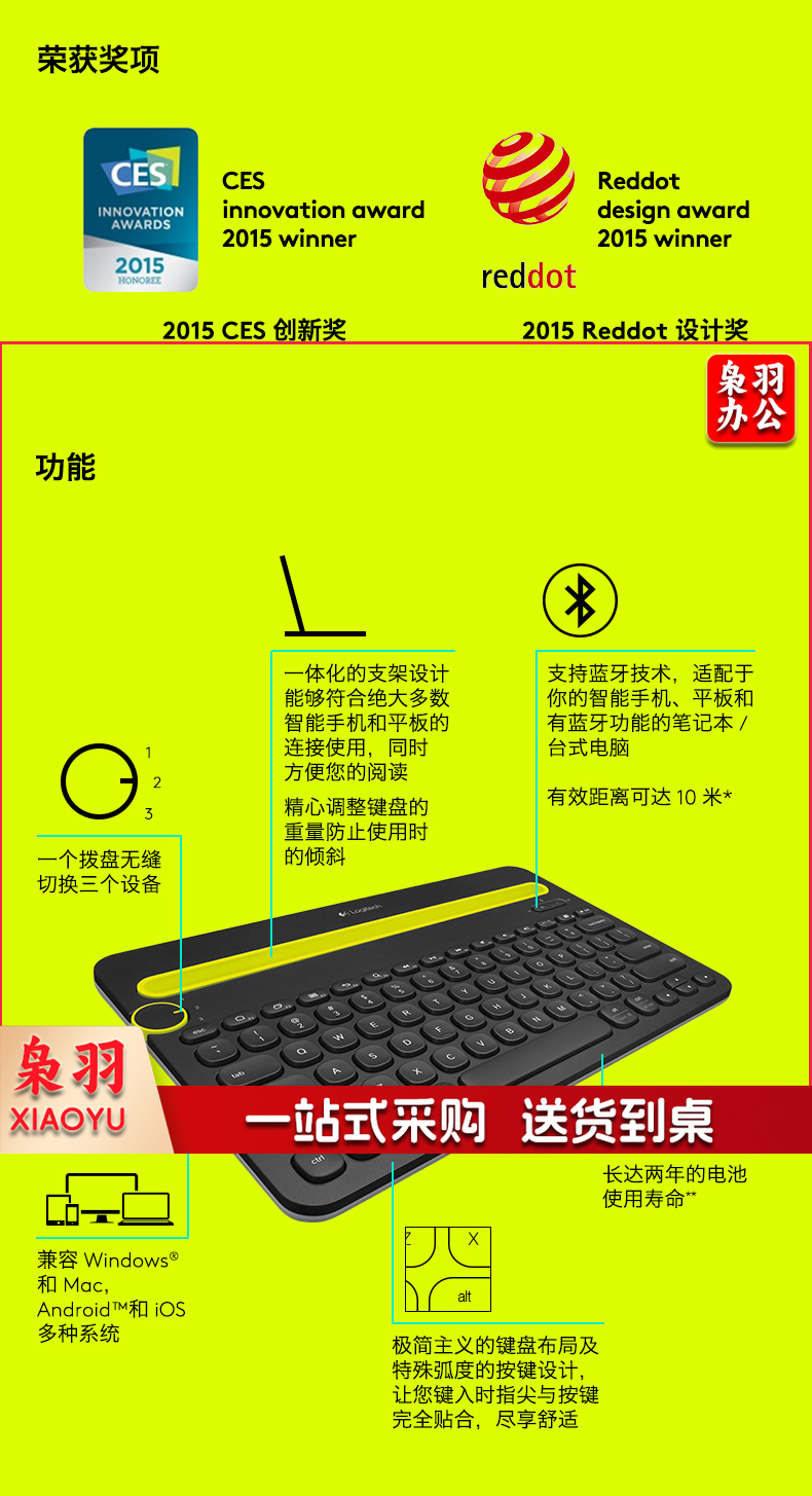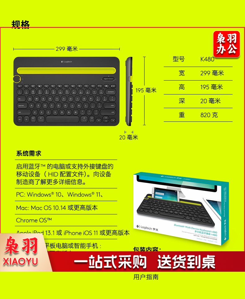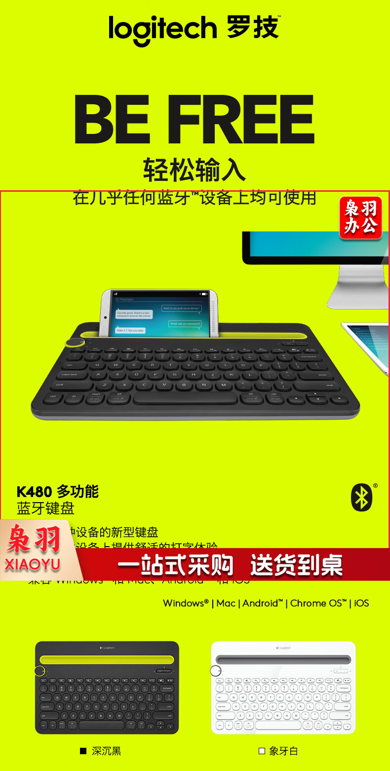 罗技(Logitech)K480 键盘 蓝牙键盘 黑色