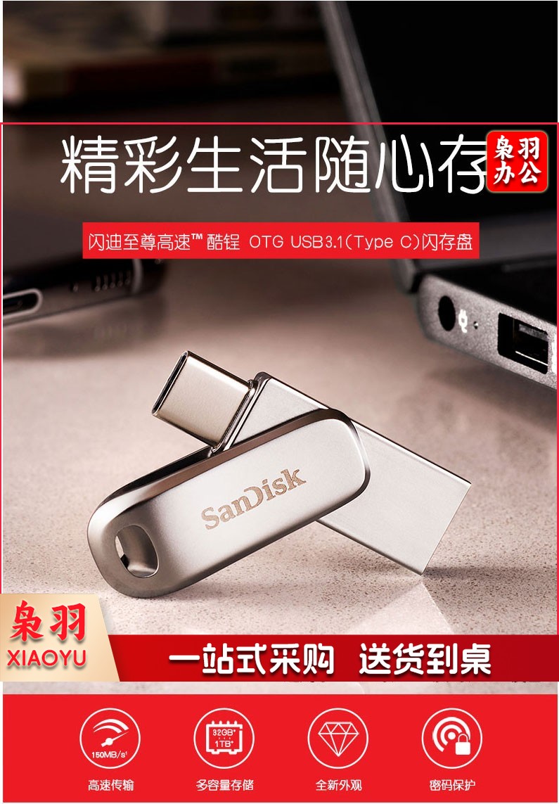 闪迪(SanDisk) u盘高速usb3.1 手机电脑优盘typec金属双接口DDC4 type-c 256G双接口