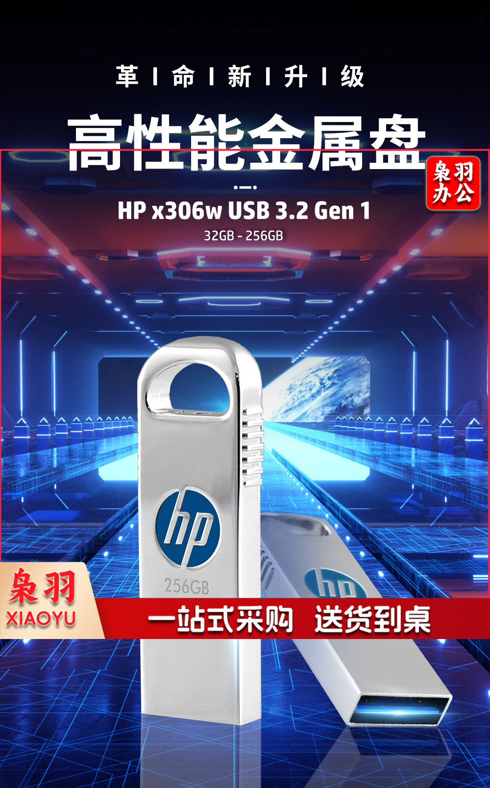惠普(HP)32G USB 3.2 Gen 1 U盘 x306w 银色金属外壳 电脑车载商务办公高速学生优盘