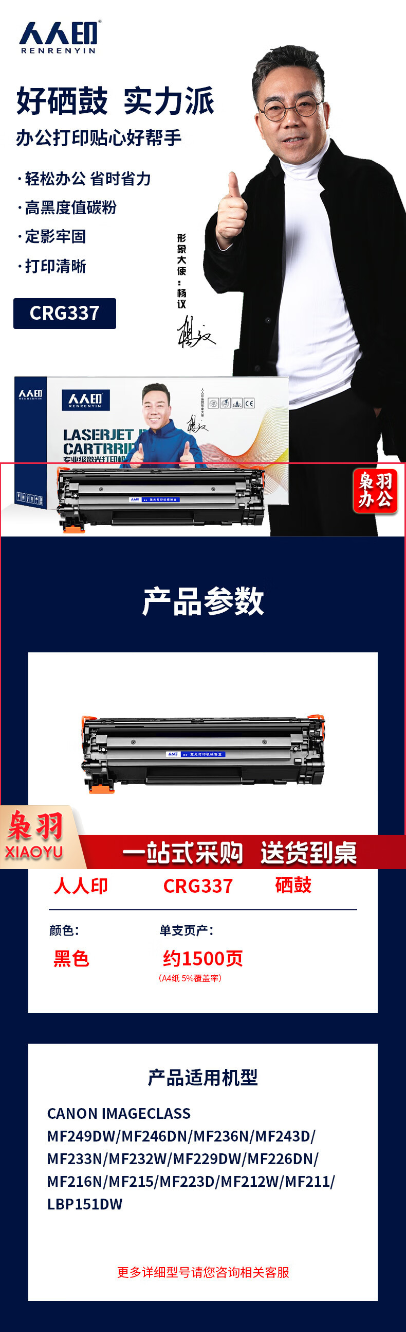 人人印 CRG337 适用佳能MF232w mf243d mf215 mf211 246dn MF236N MF249dw 227dw LBP151dw 粉 盒/1500页