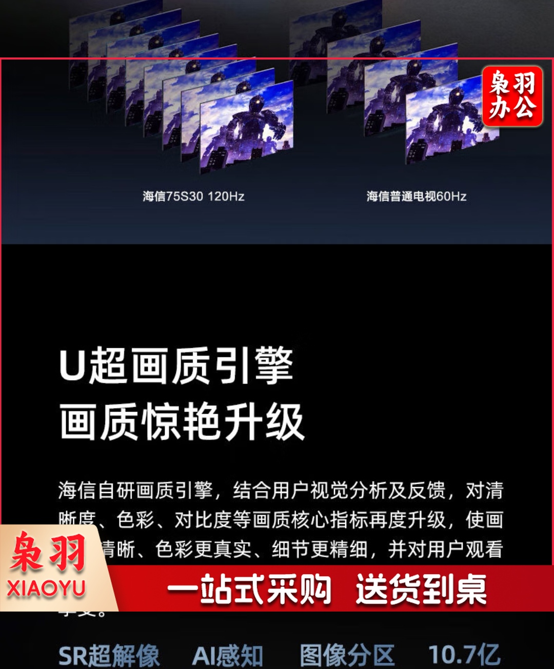 海信电视75S30 75英寸4K超高清120Hz MEMC防抖2+32GB智慧屏 远场语音智能液晶平板电视机