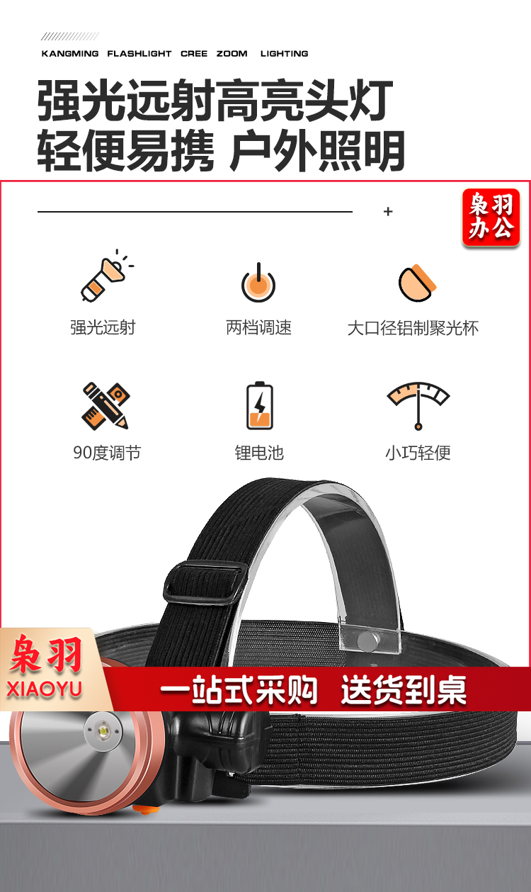 康铭头灯矿灯强光远射充电钓鱼灯夜钓灯户外灯 KM-2831A头灯