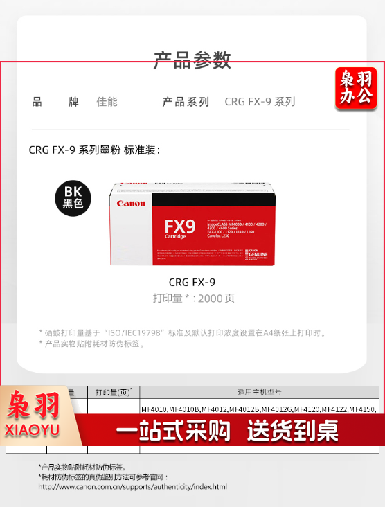 佳能(Canon)硒鼓CRG FX9 黑色(适用MF4010/MF4012/FAX-L120/L120J/FAX-L140/FAX-L140G)