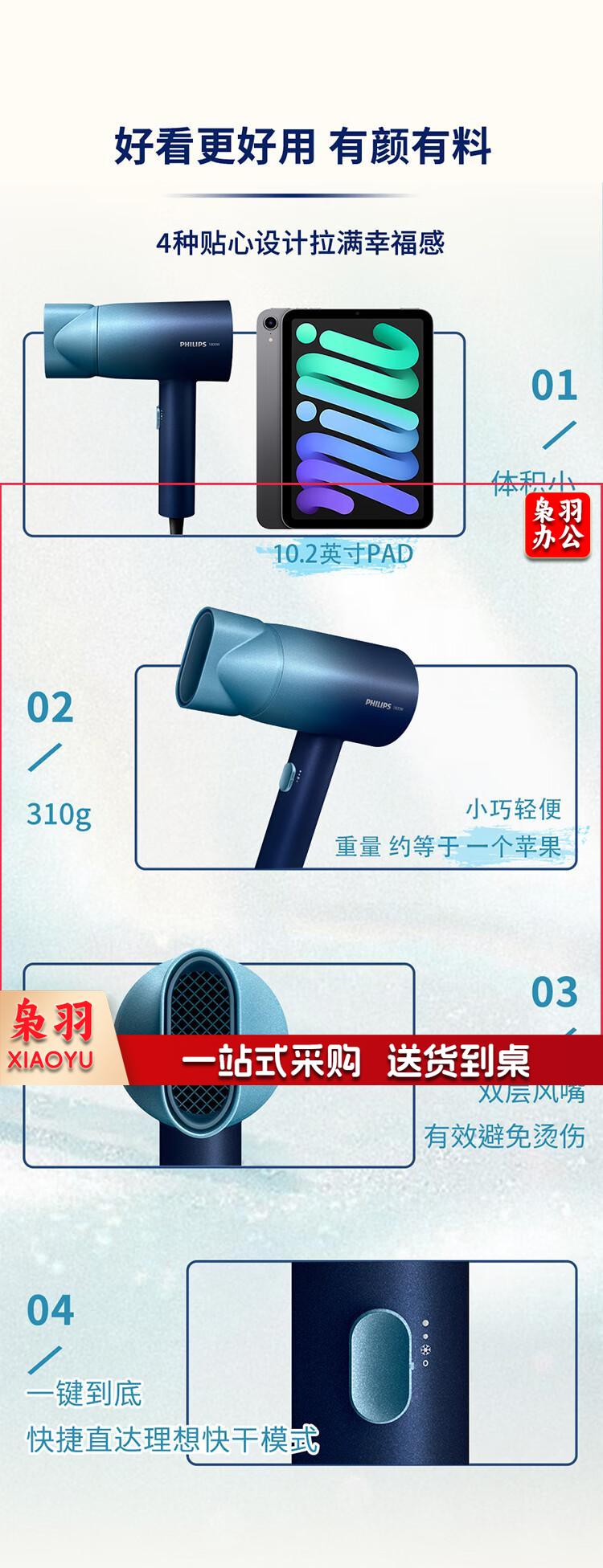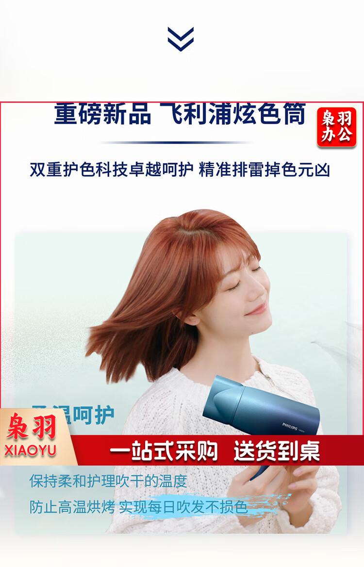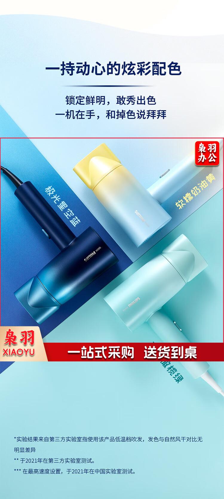 飞利浦(PHILIPS)电吹风机 锌离子防晒护色 5000万负离子烫染修复 学生宿舍必备 BHD399/65 极光星空蓝