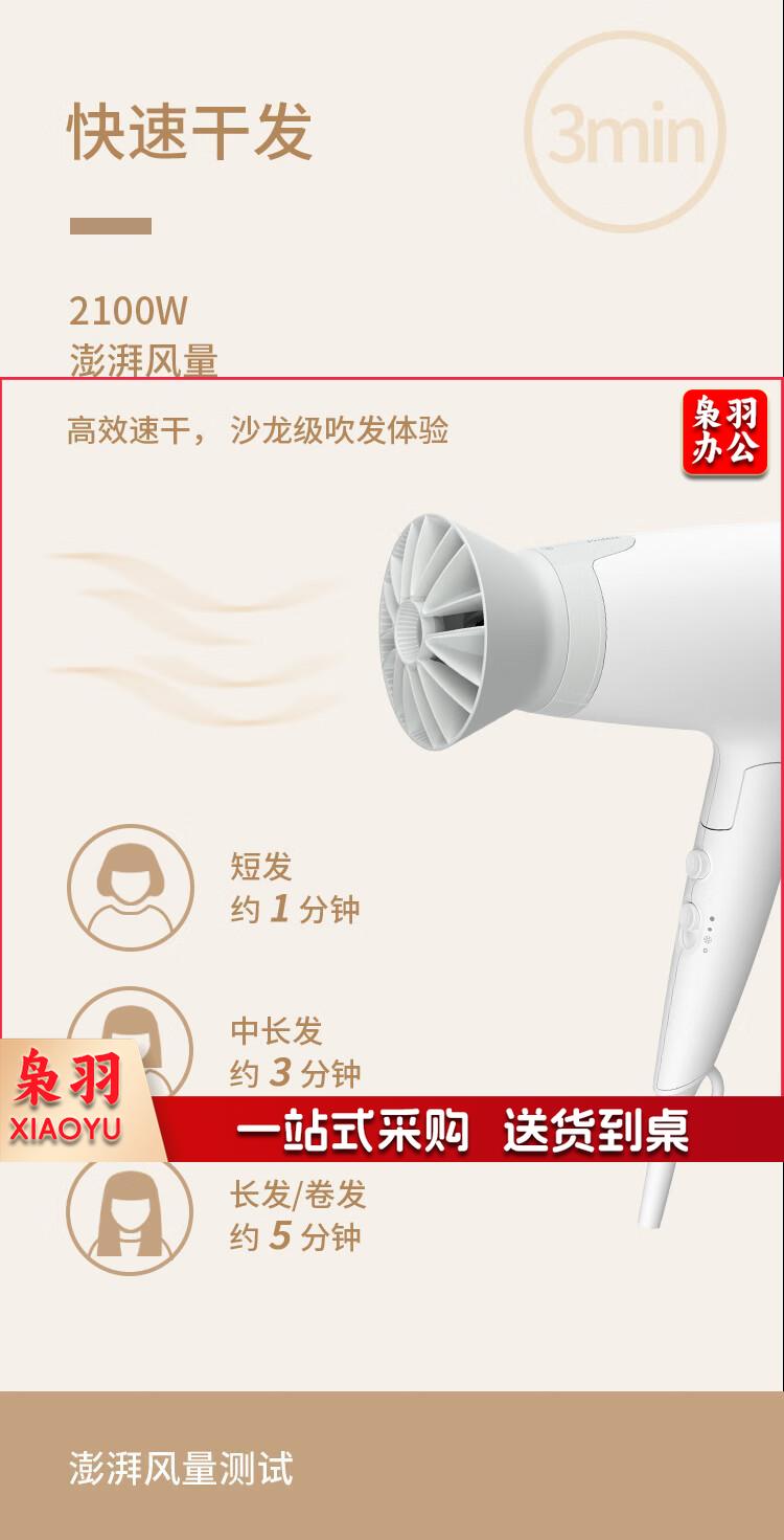 飞利浦(PHILIPS) 电吹风机家用吹风筒 恒温速干家用大功率吹风筒送女友男友礼物 可折叠快速干发BHD308/05黑色