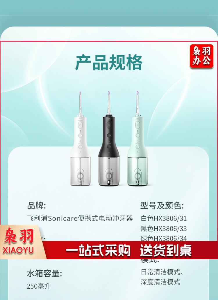 飞利浦(PHILIPS)Sonicare 便携式冲牙器 全自动水牙线 成人洗牙器 家用牙齿美牙舱 HX3806/31 白色