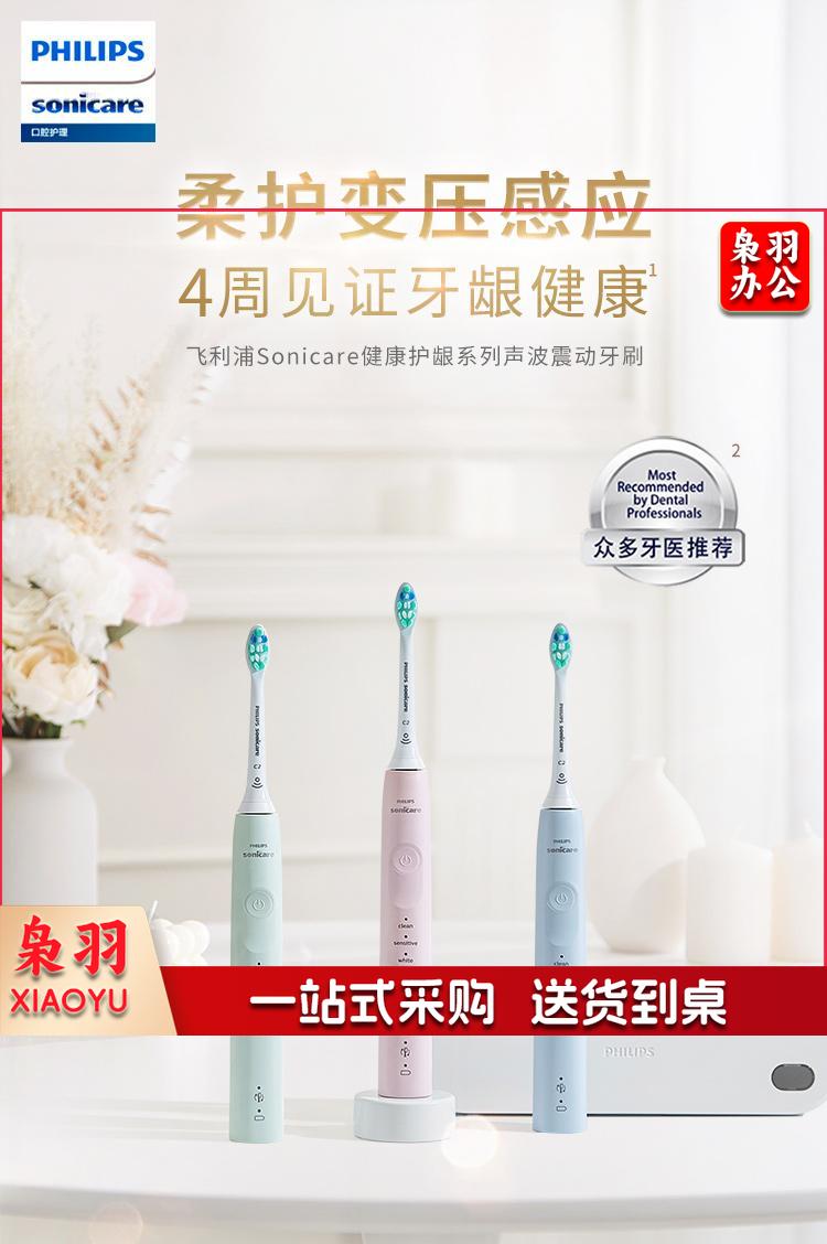 飞利浦电动牙刷成人 健康护龈系列 变压感应 带紫外线杀菌牙刷盒 3种模式 7倍清除牙菌斑 蓝色HX3697/22
