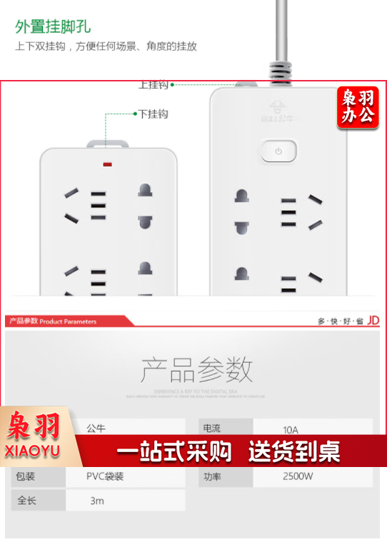 公牛(BULL)GN-402 插座 插线板/插排/排插/接线板/拖线板 6位总控全长3米