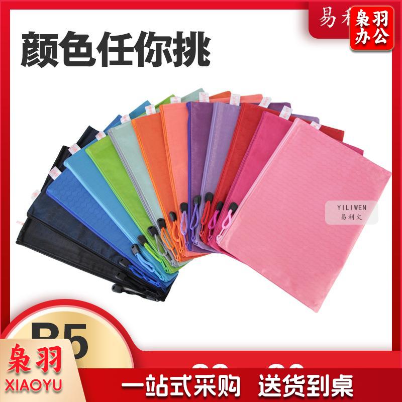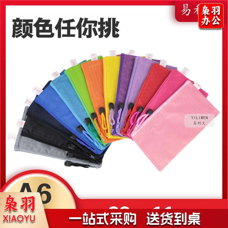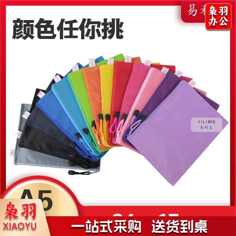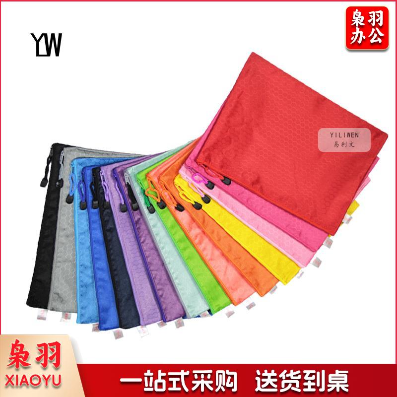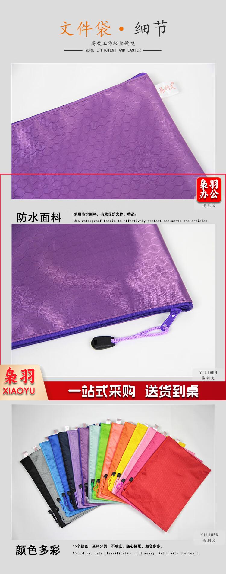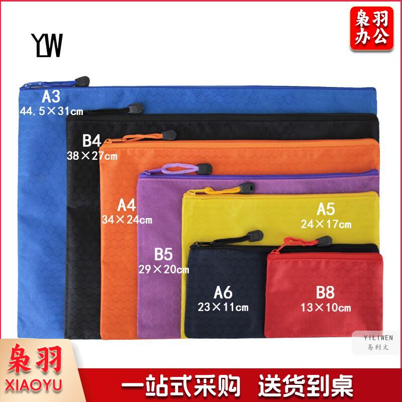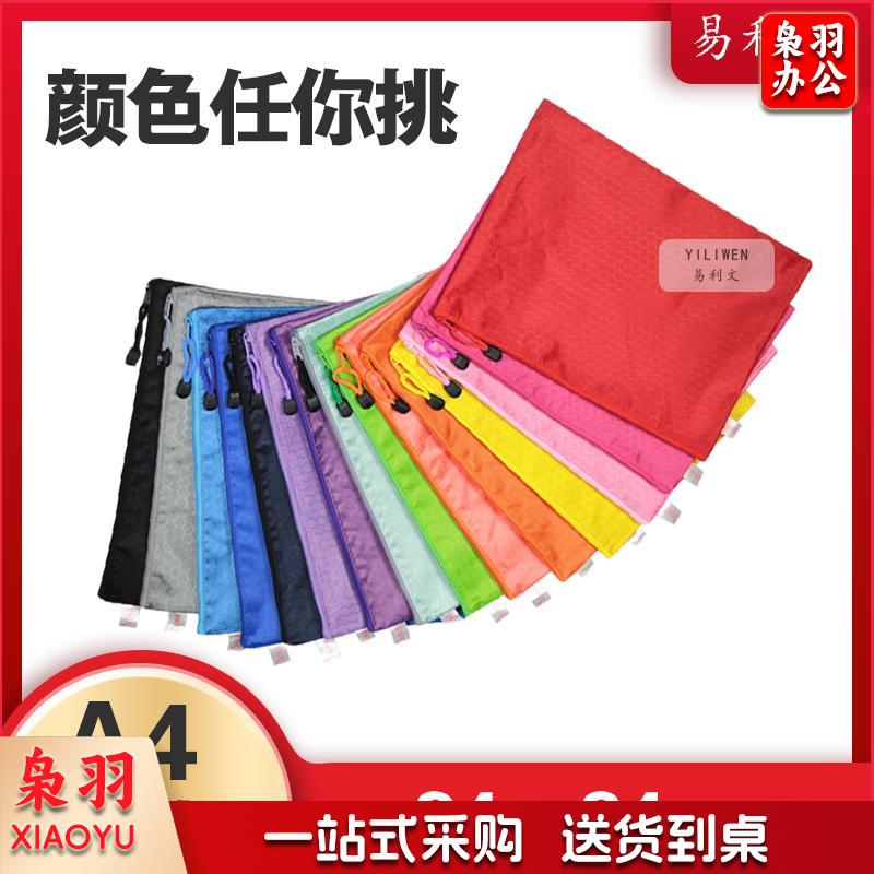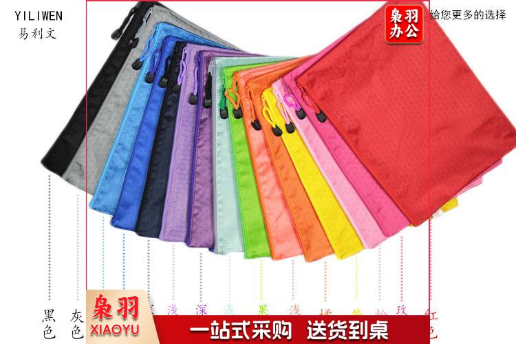 易利文 足球纹拉链文件袋多功能布制多彩资料袋防水牛津帆布拉边袋 宝蓝色 A4(34X24cm)
