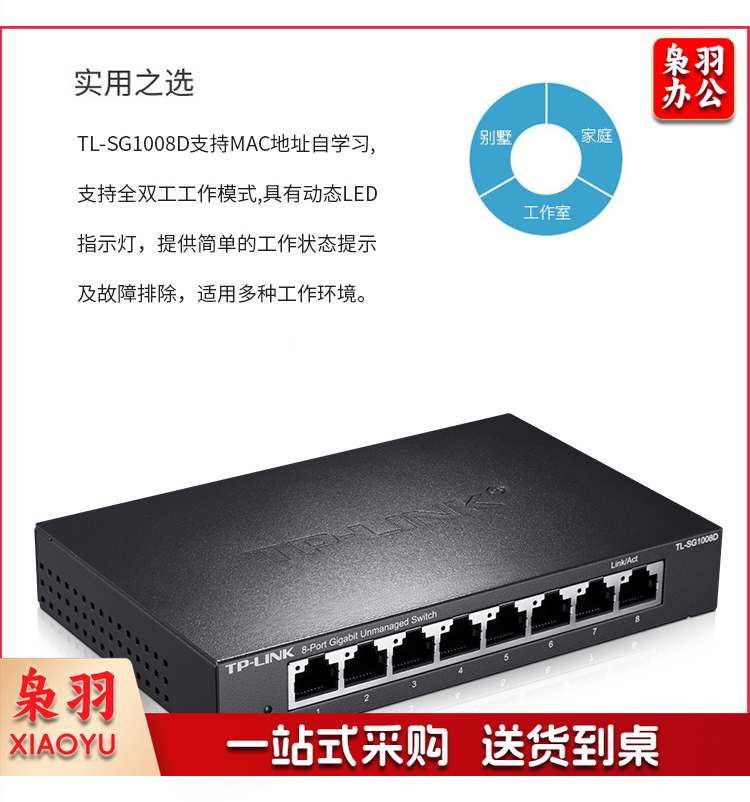 TP-LINK 8口千兆交换机 企业级交换器 监控网络网线分线器 分流器 金属机身 TL-SG1008D