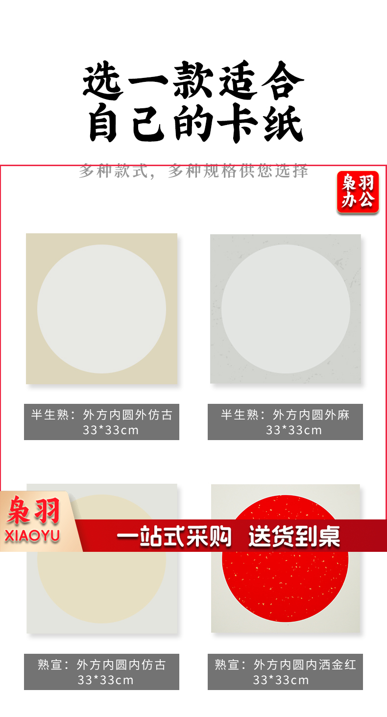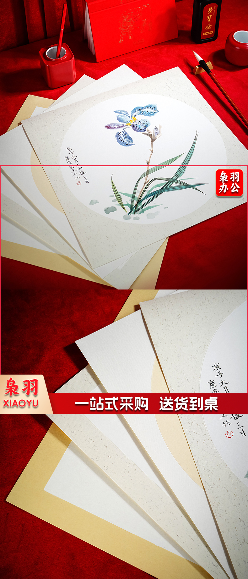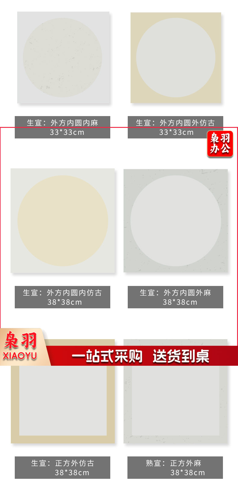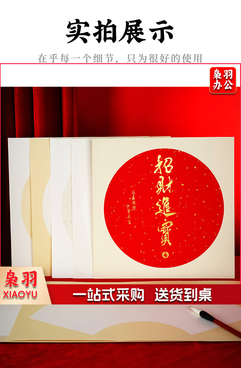 荣宝斋 宣纸 卡纸 文房四宝 国画扇面工笔画书法水彩画软卡圆形方形镜片纸 生宣-外方内圆-外仿古(33*33)
