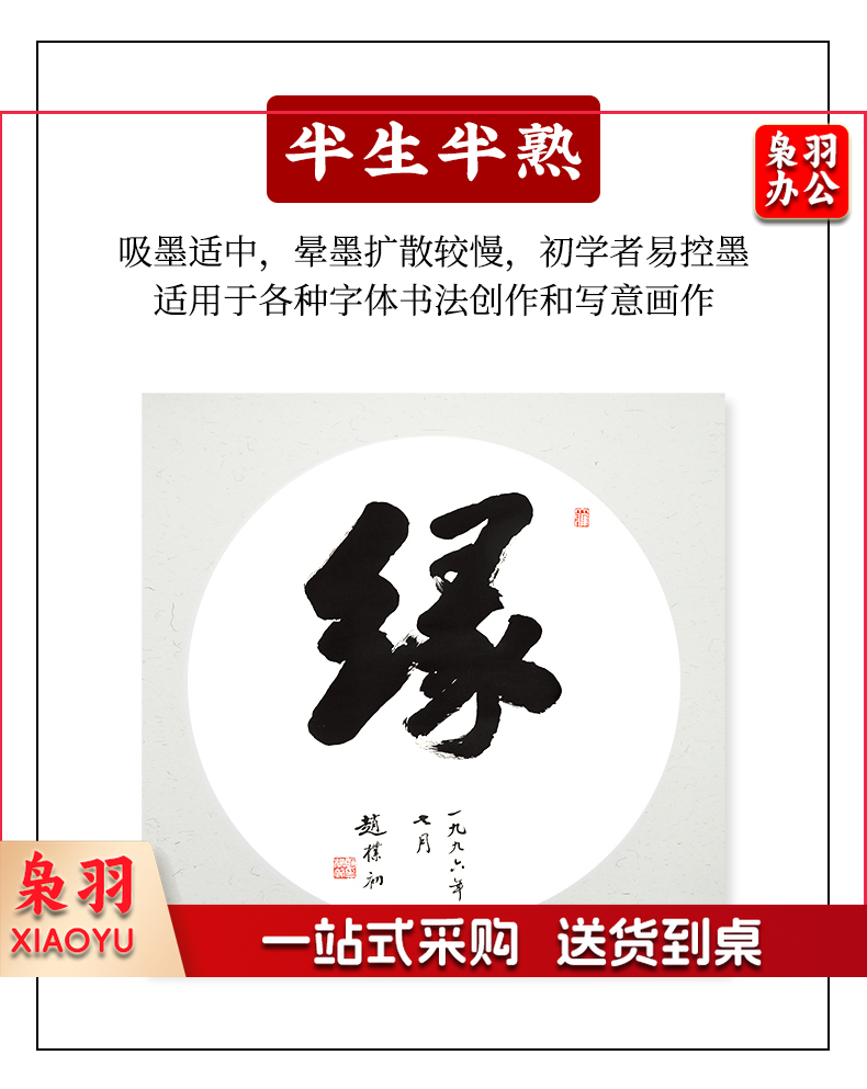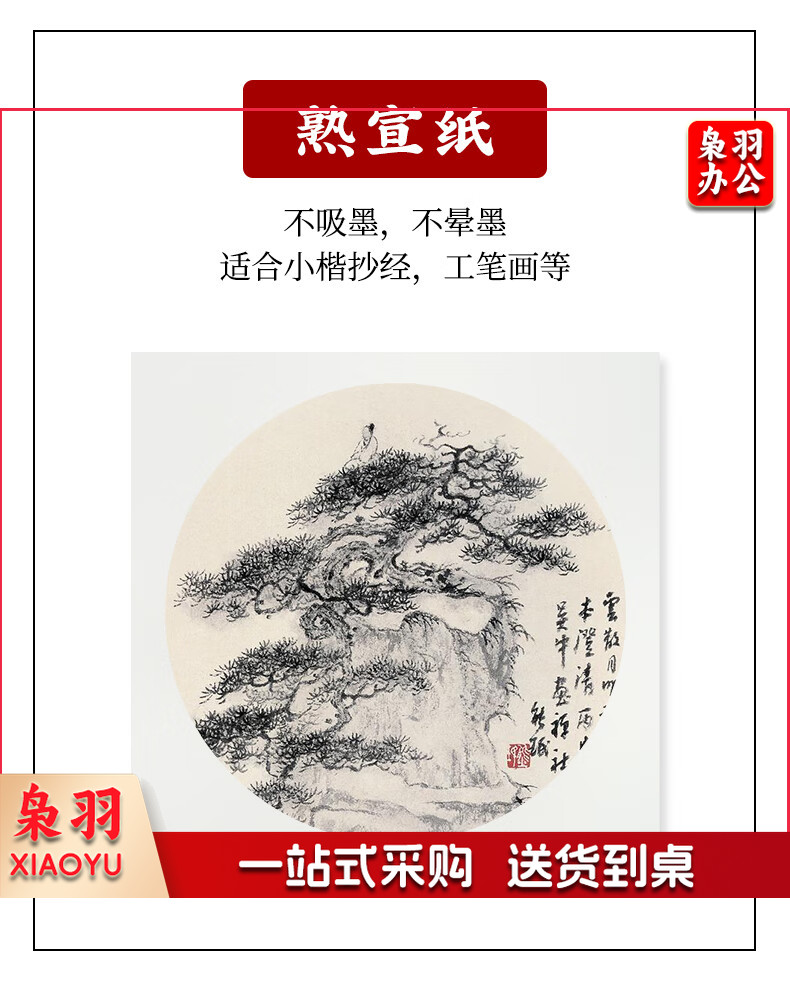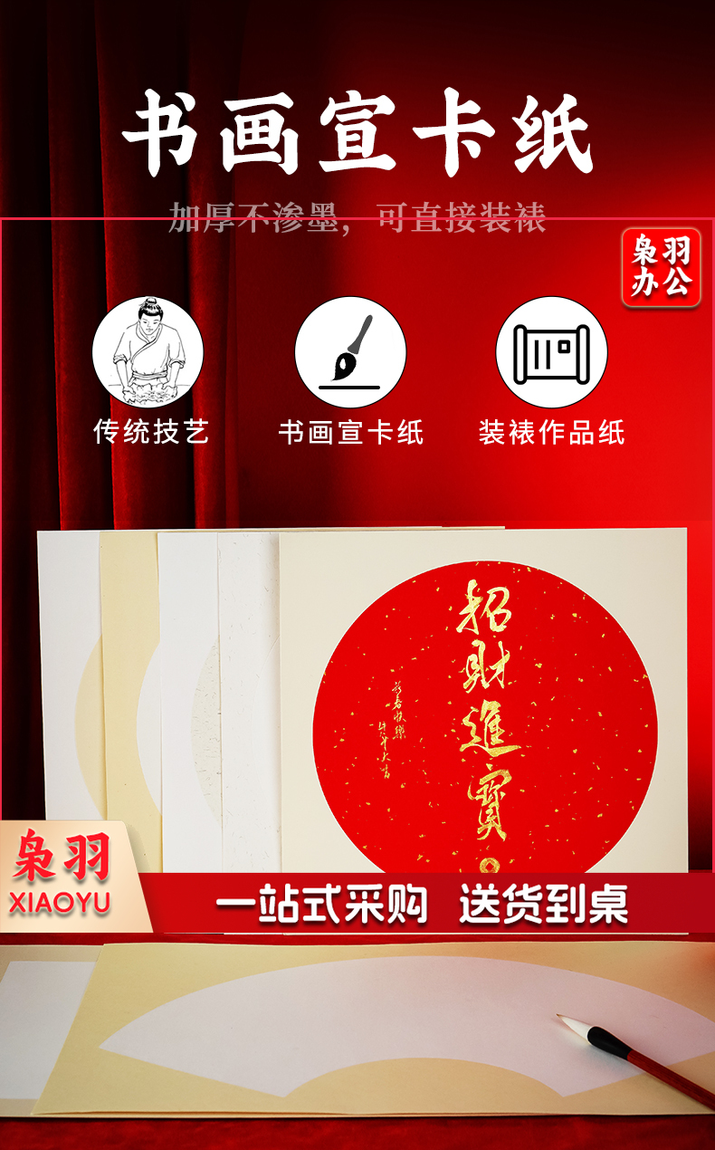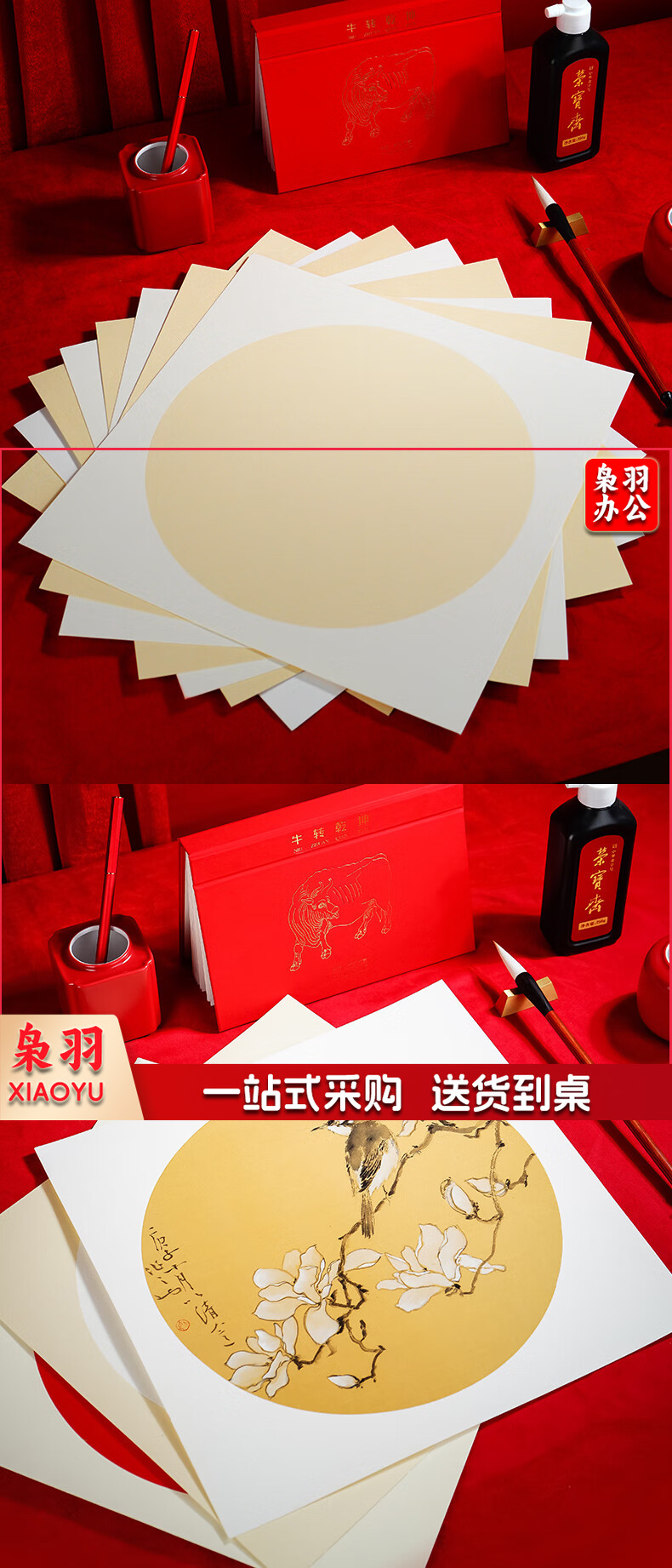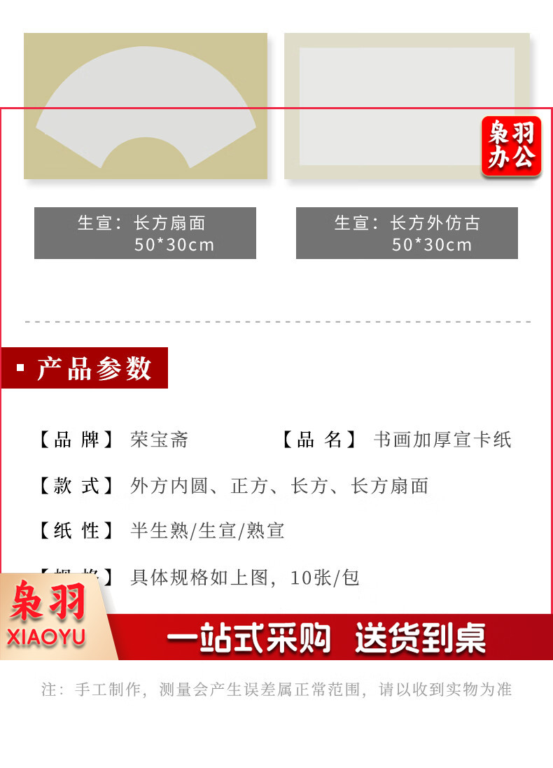 荣宝斋 宣纸 卡纸 文房四宝 国画扇面工笔画书法水彩画软卡圆形方形镜片纸 生宣-外方内圆-外仿古(33*33)