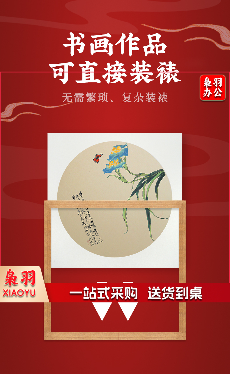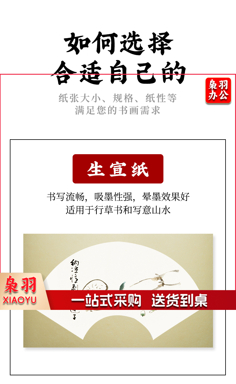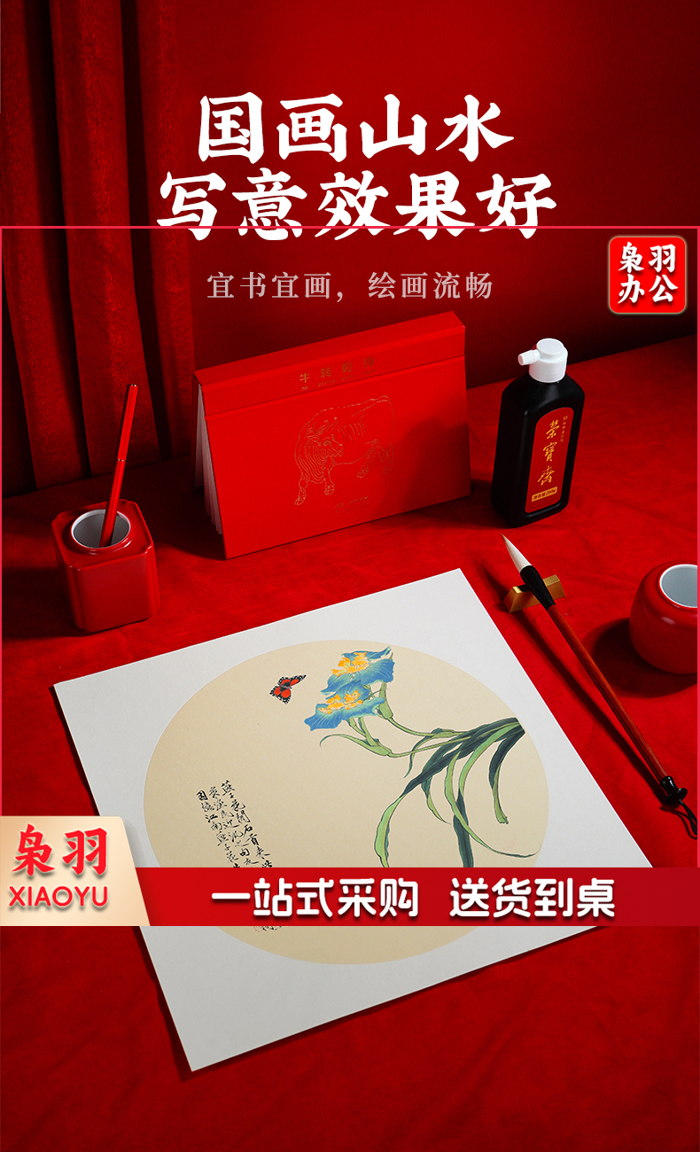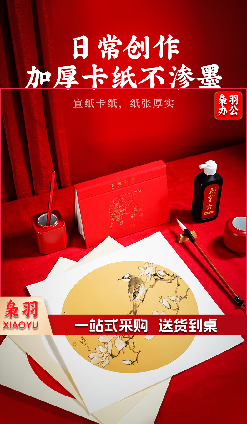 荣宝斋 宣纸 卡纸 文房四宝 国画扇面工笔画书法水彩画软卡圆形方形镜片纸 生宣-外方内圆-外仿古(33*33)