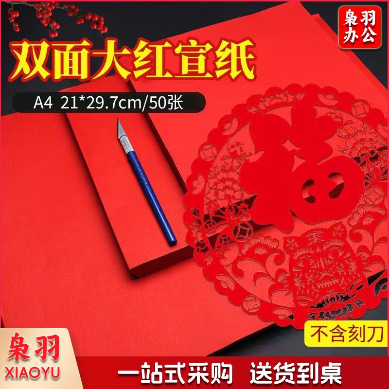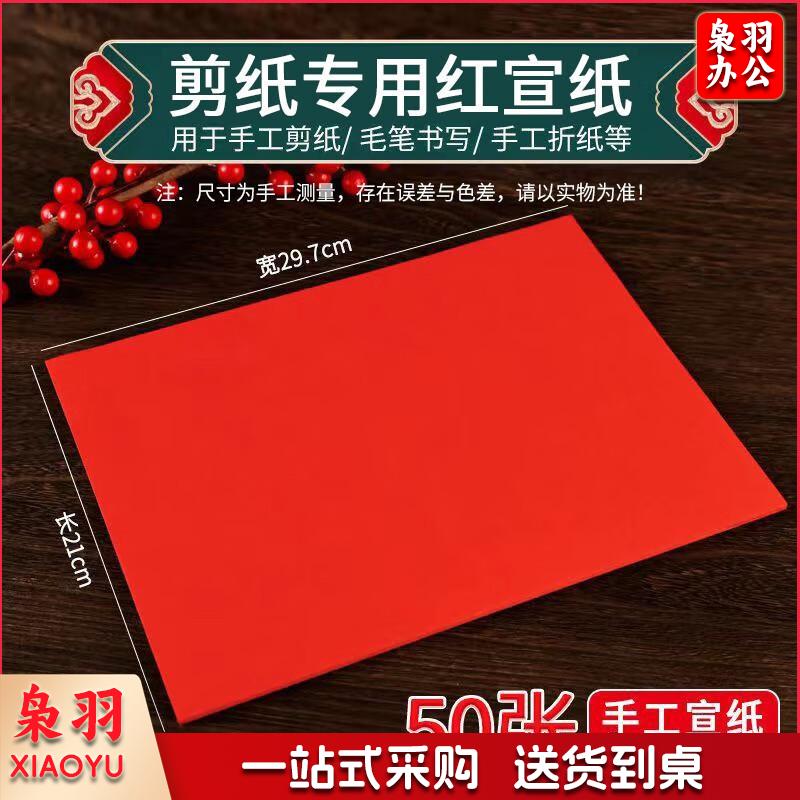 A4剪纸专用纸双面大红色宣纸中小学生儿童手工课刻画纸刻纸窗花 17*17剪纸专用宣纸【50张】17*17剪纸专用宣纸50张