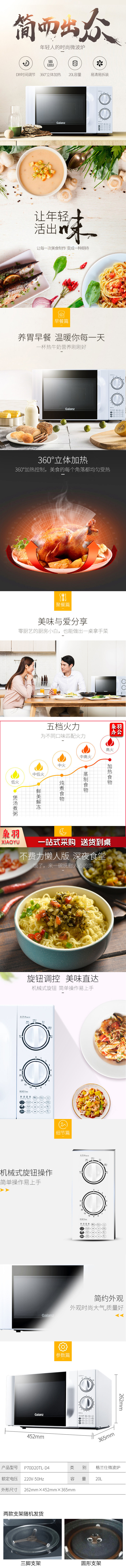 格兰仕 20L 六档火力旋钮P70D20TL-D4 家用小型迷你机械旋钮微波炉
