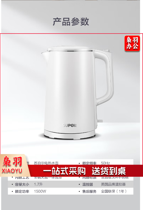 苏泊尔(SUPOR)电水壶 双层防烫烧水壶热水壶 全钢无缝内胆电热水壶SW-17J418 1.7L大容量
