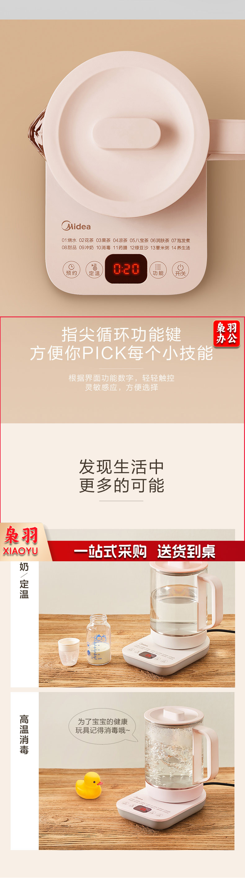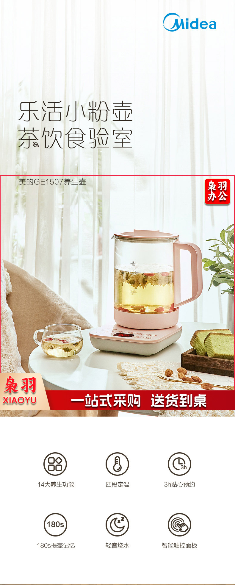 美的 Midea GE1507迷你养生壶烧水壶电热水壶煮茶壶花茶壶电热水壶电水壶