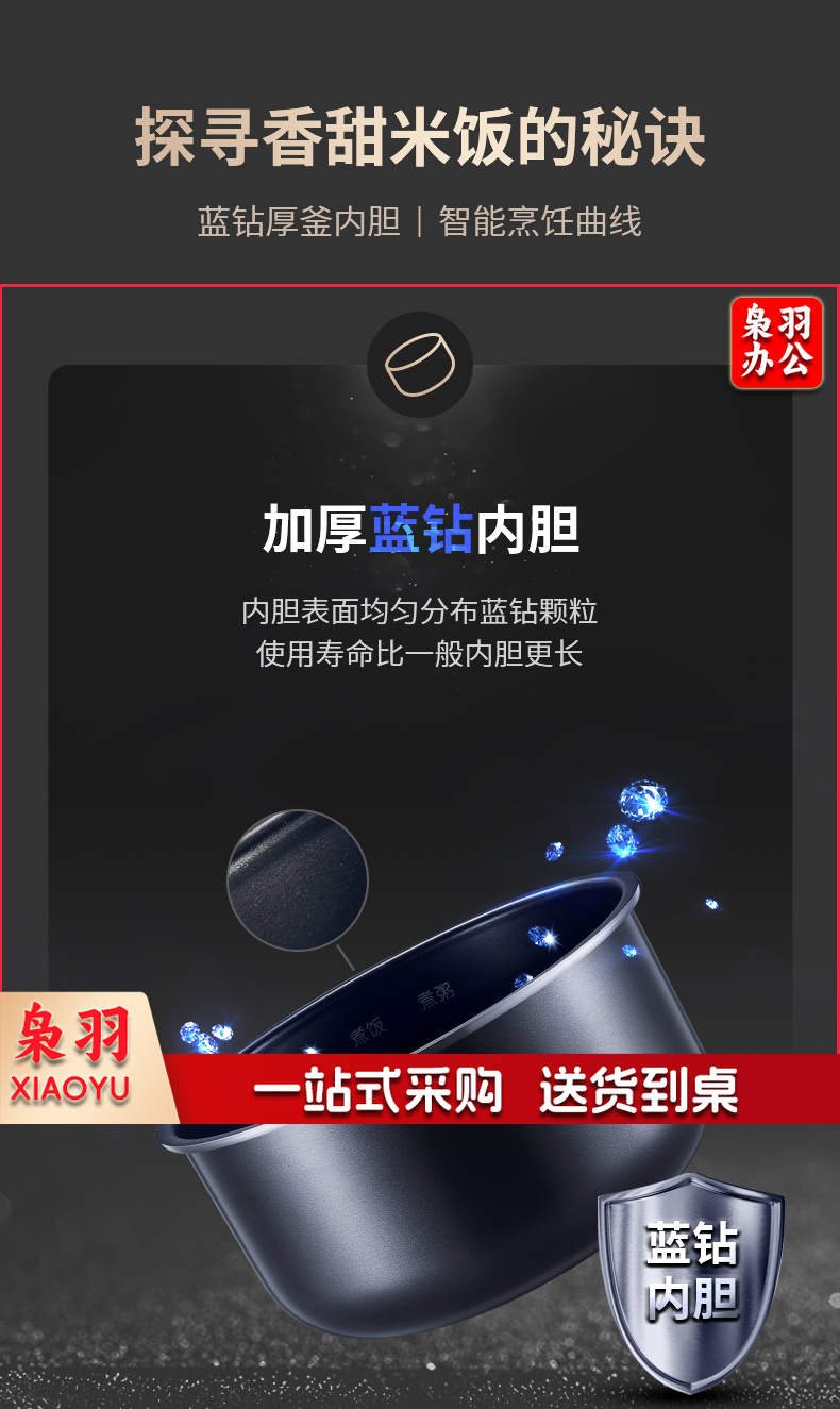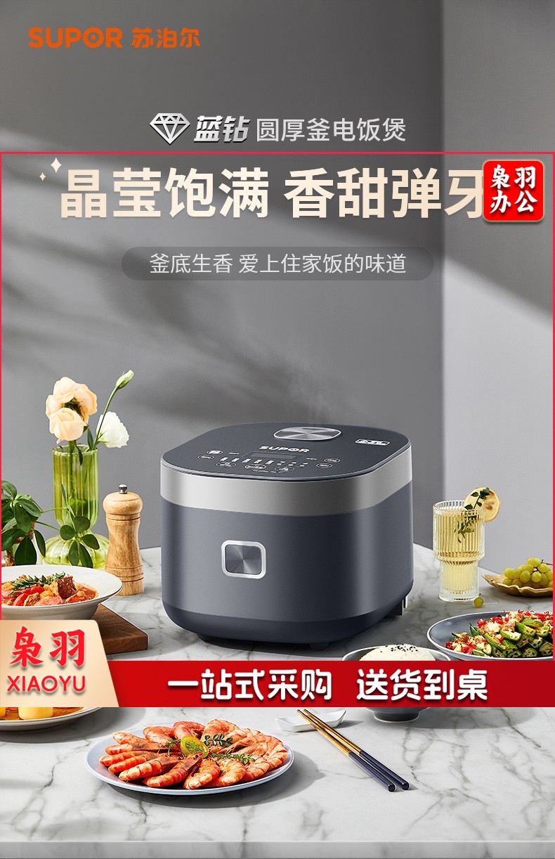 苏泊尔(SUPOR)电饭煲电饭锅4L蓝钻厚釜内胆3-8人使用可添加记忆功能8大菜单家用智能电饭煲40FC776