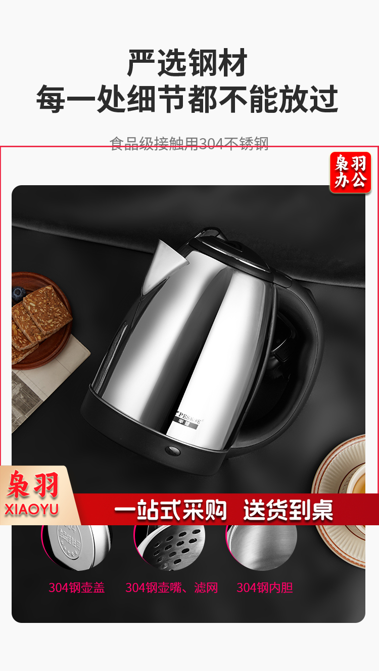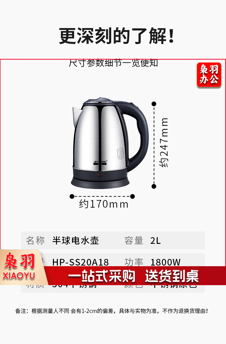 半球(Peskoe)电水壶2L 食品级304不锈钢电热水壶烧水壶HP-SS20A18