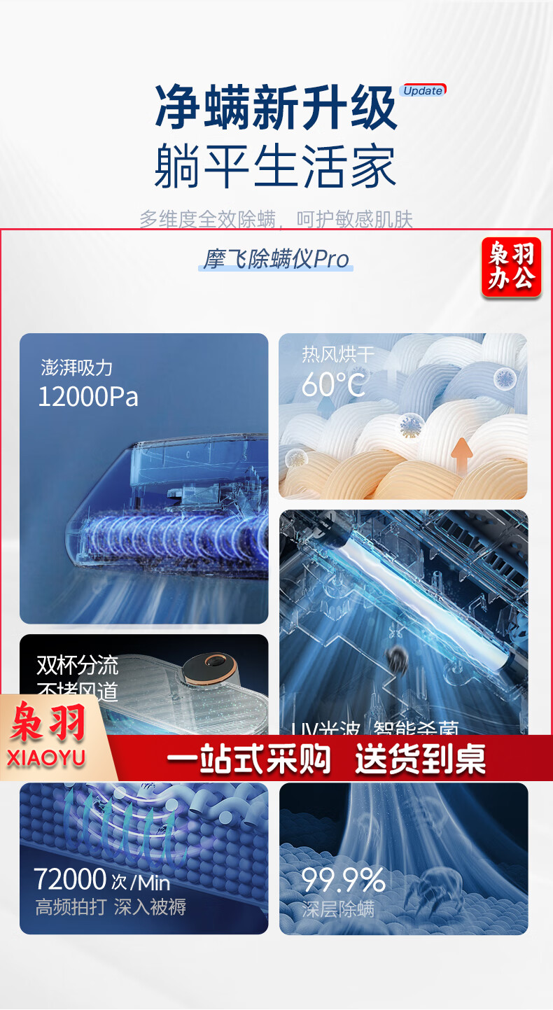 摩飞电器(Morphyrichards)除螨仪 双杯家用手持吸尘除螨机 大吸力床上拍打去螨虫机 热风祛湿紫外线杀菌机MR3101