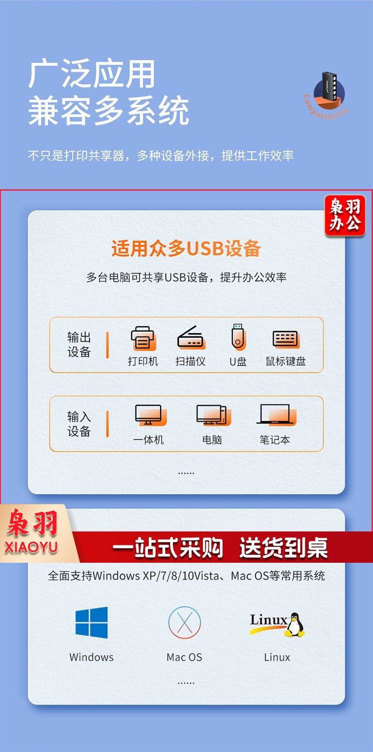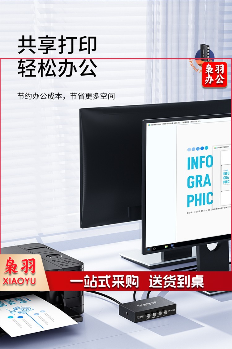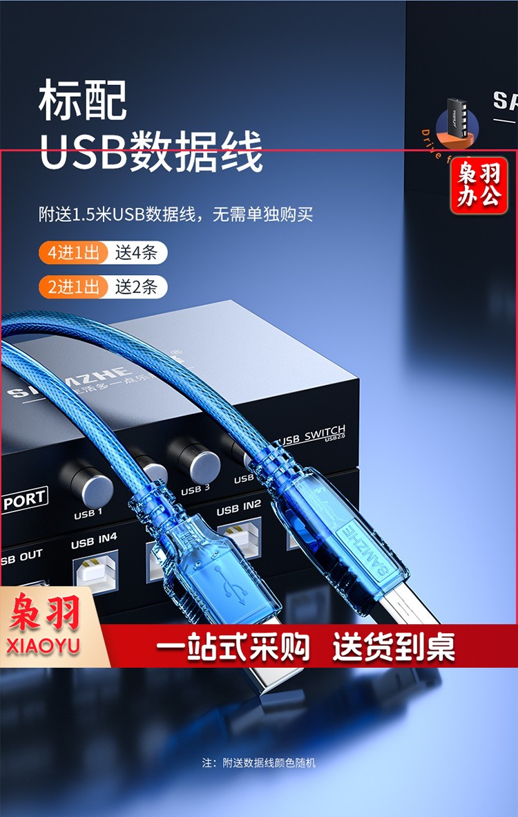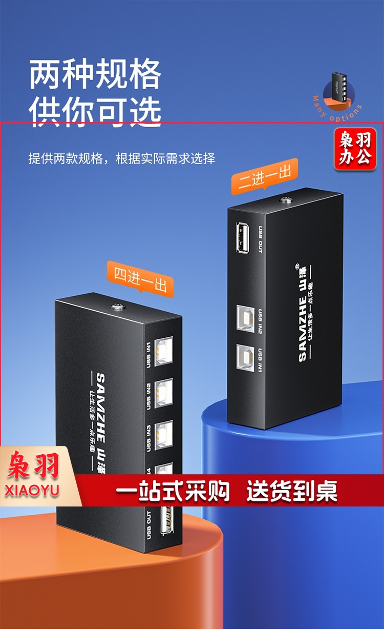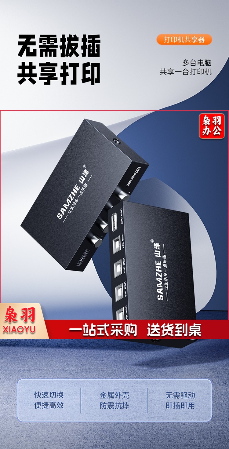 山泽 usb打印机共享器 四进一出切换器一拖四分线器 台式机笔记本电脑接鼠标键盘U盘共享4口转换器免驱BL-04