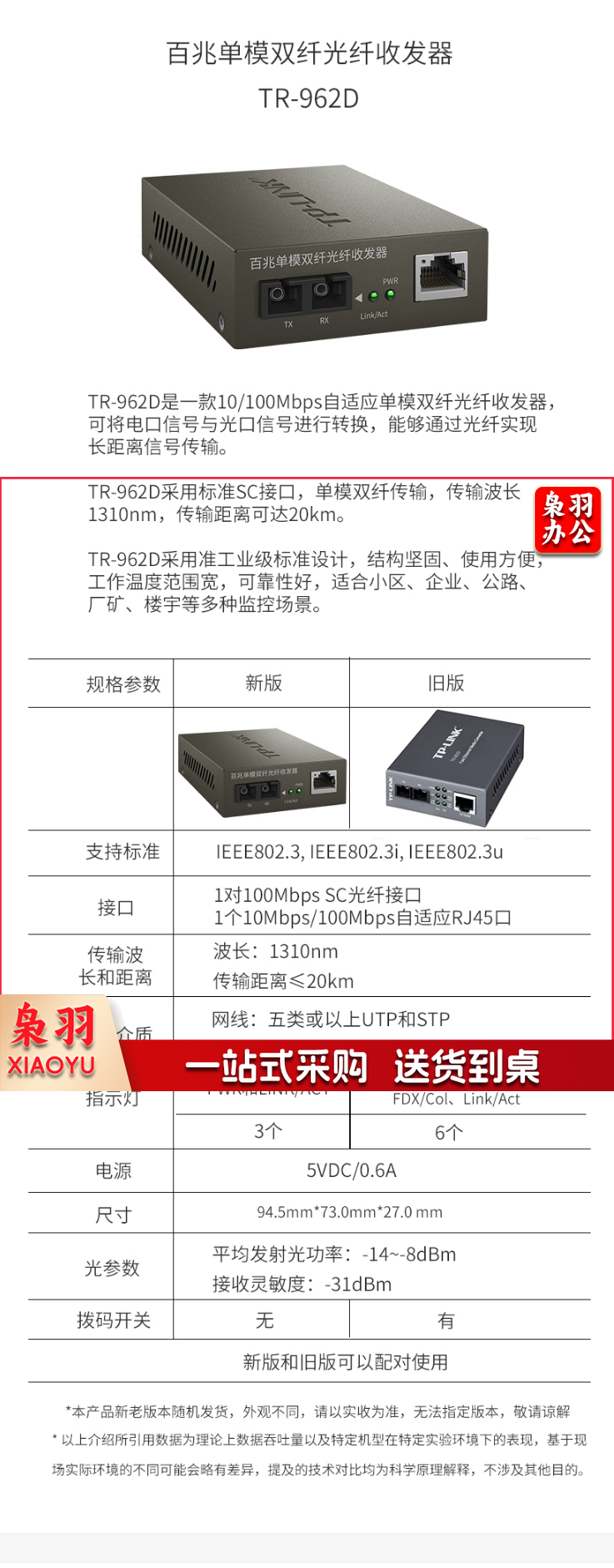 TP-LINK TR-962D 百兆单模光纤收发器(单位:个)230912152529