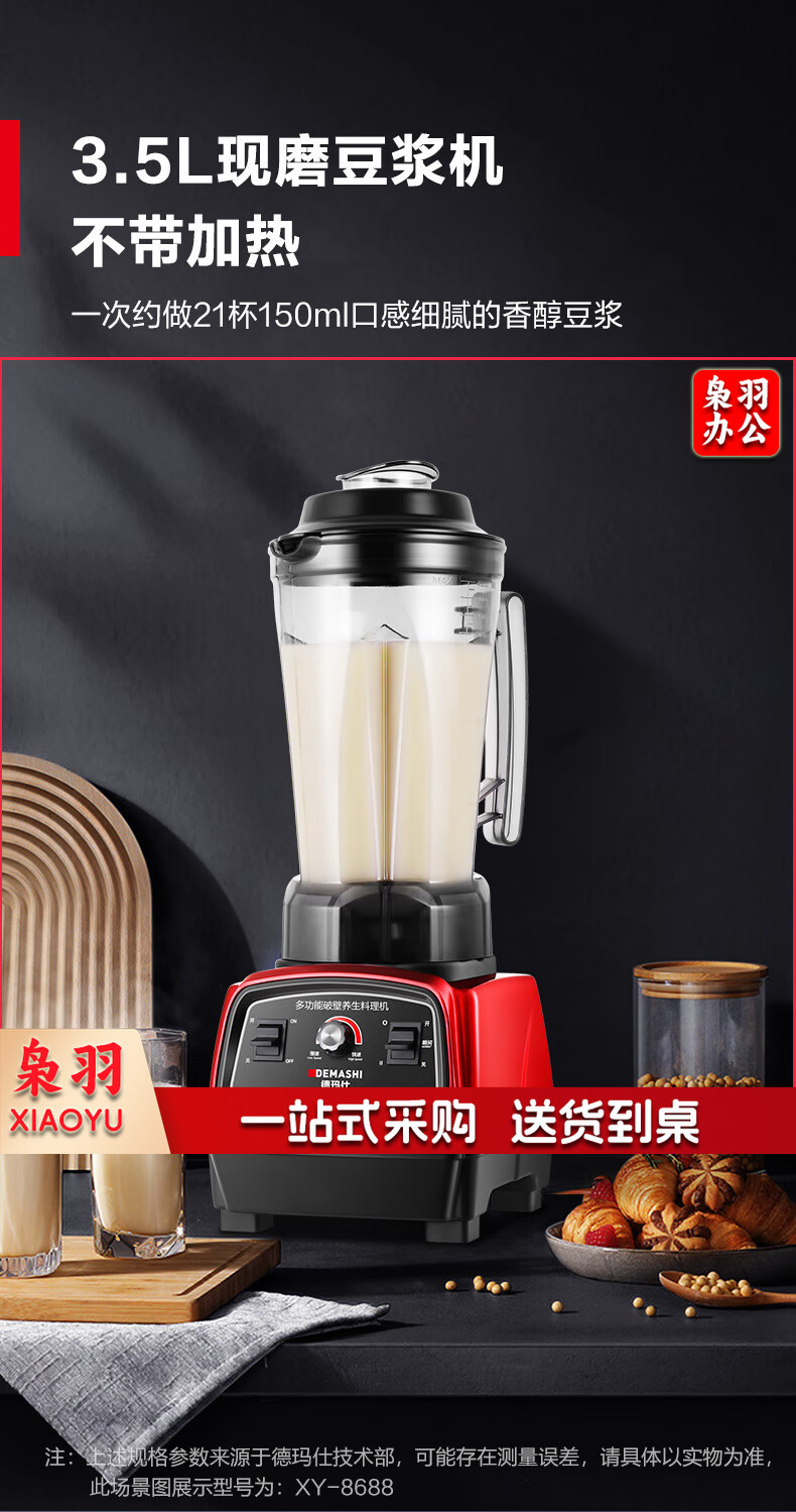 德玛仕(DEMASHI)商用豆浆机 大容量早餐店用 现磨多功能大功率料理机破壁机 单位食堂用全自动快速出浆 3.5升一键清洗丨无加热丨XY-8688