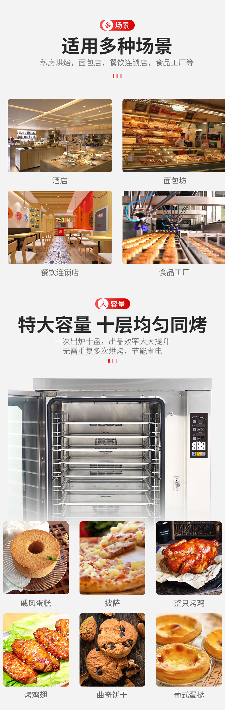 工厂直销热风炉电烤箱商用 烤饼鸡蛋糕蛋挞红薯十层大型面包烤炉(CK10C)