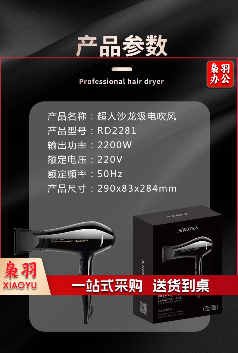 超人电吹风机 大功率蓝光负离子护发 家用旅行发廊吹风机RD2281