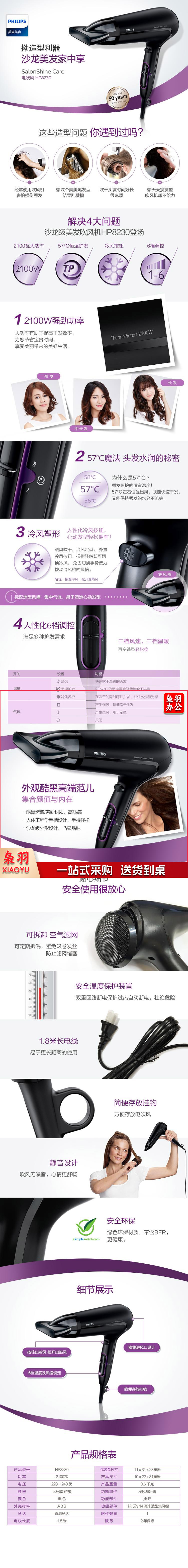 飞利浦 恒温护发电吹风HP8230吹风机大功率2100W大学生宿舍专用吹风机 单位:个