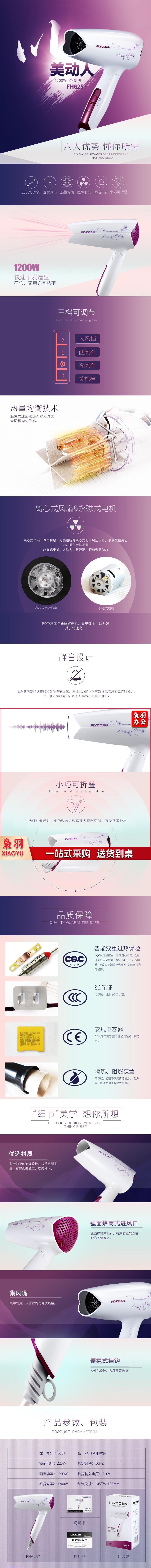 飞科 FH6255 电吹风机大功率吹风筒大风可折叠1200W