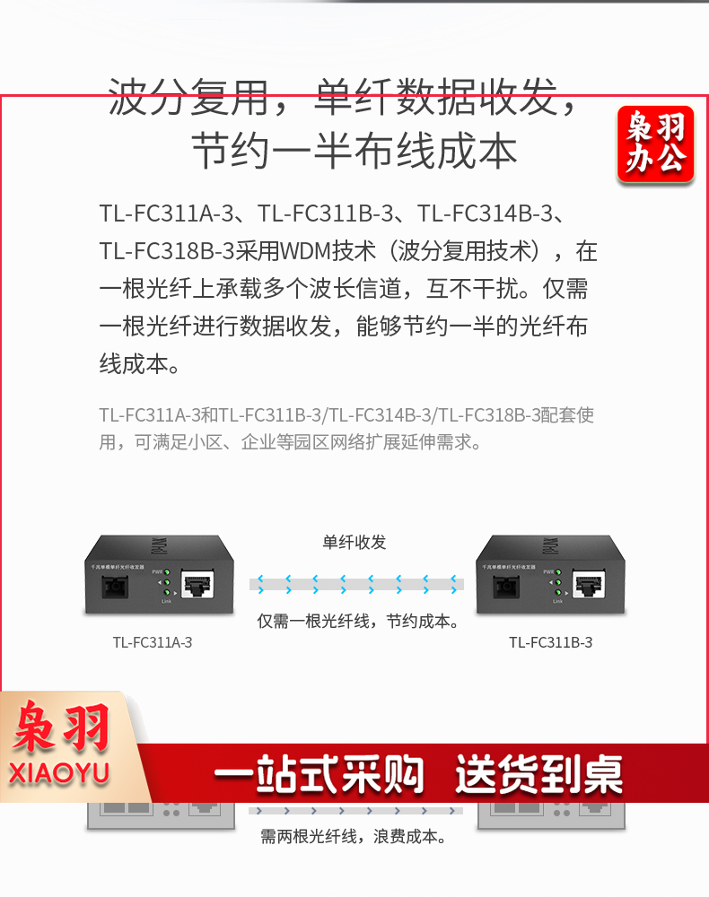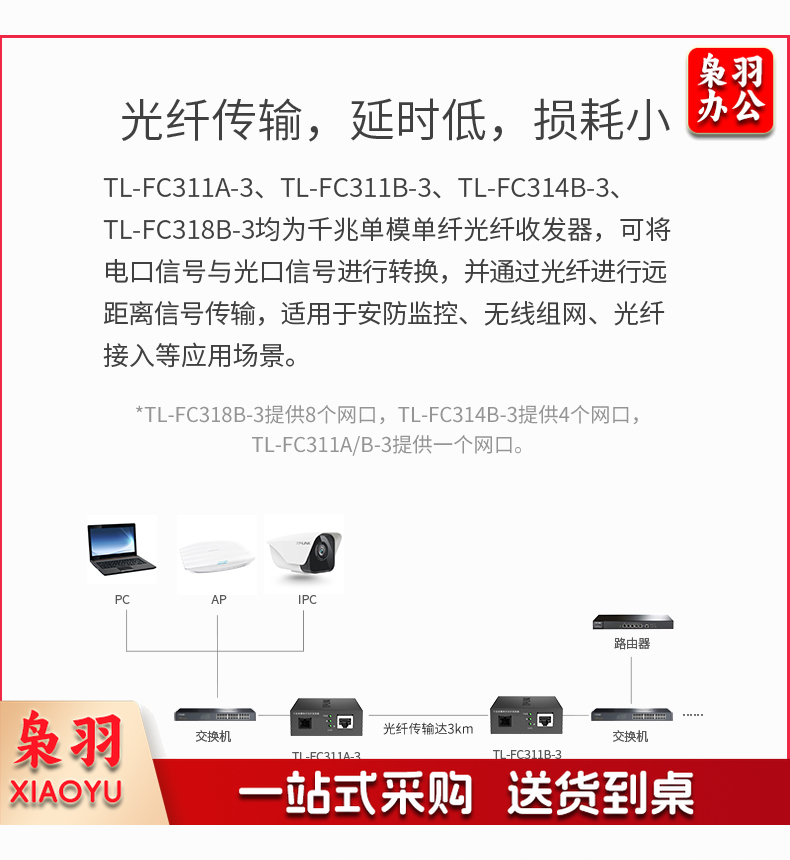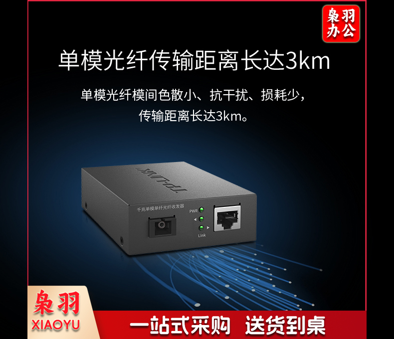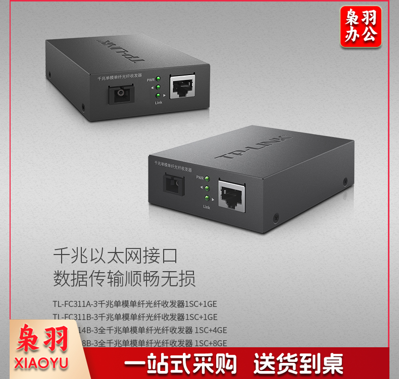 TP-LINK TL-FC311A/B-3一对光纤收发器套装千兆单模单纤光电转换器模块网络监控远距离双向3km机架式一光一电