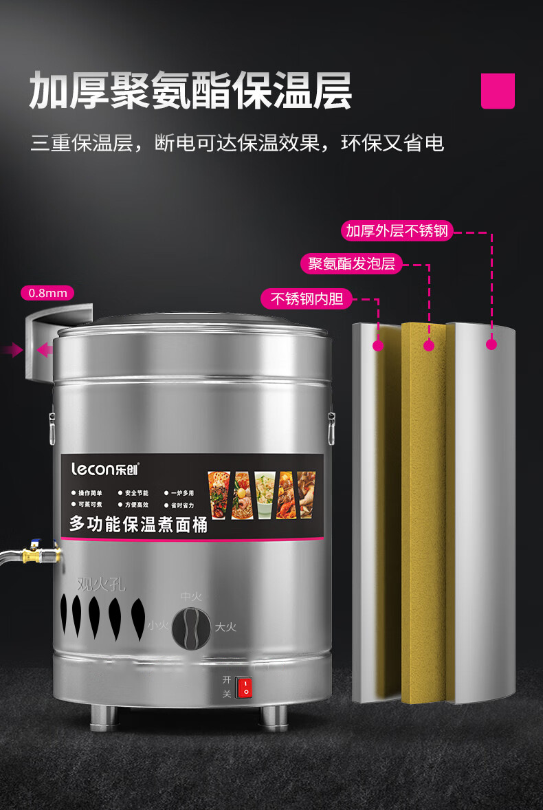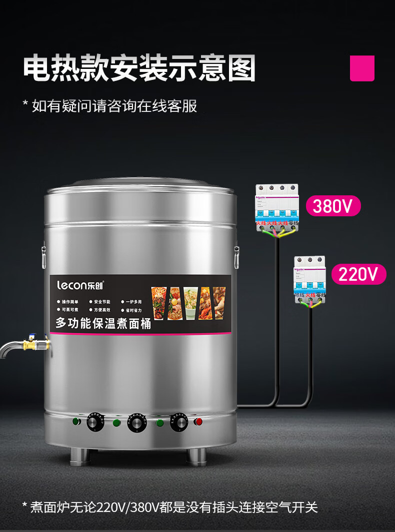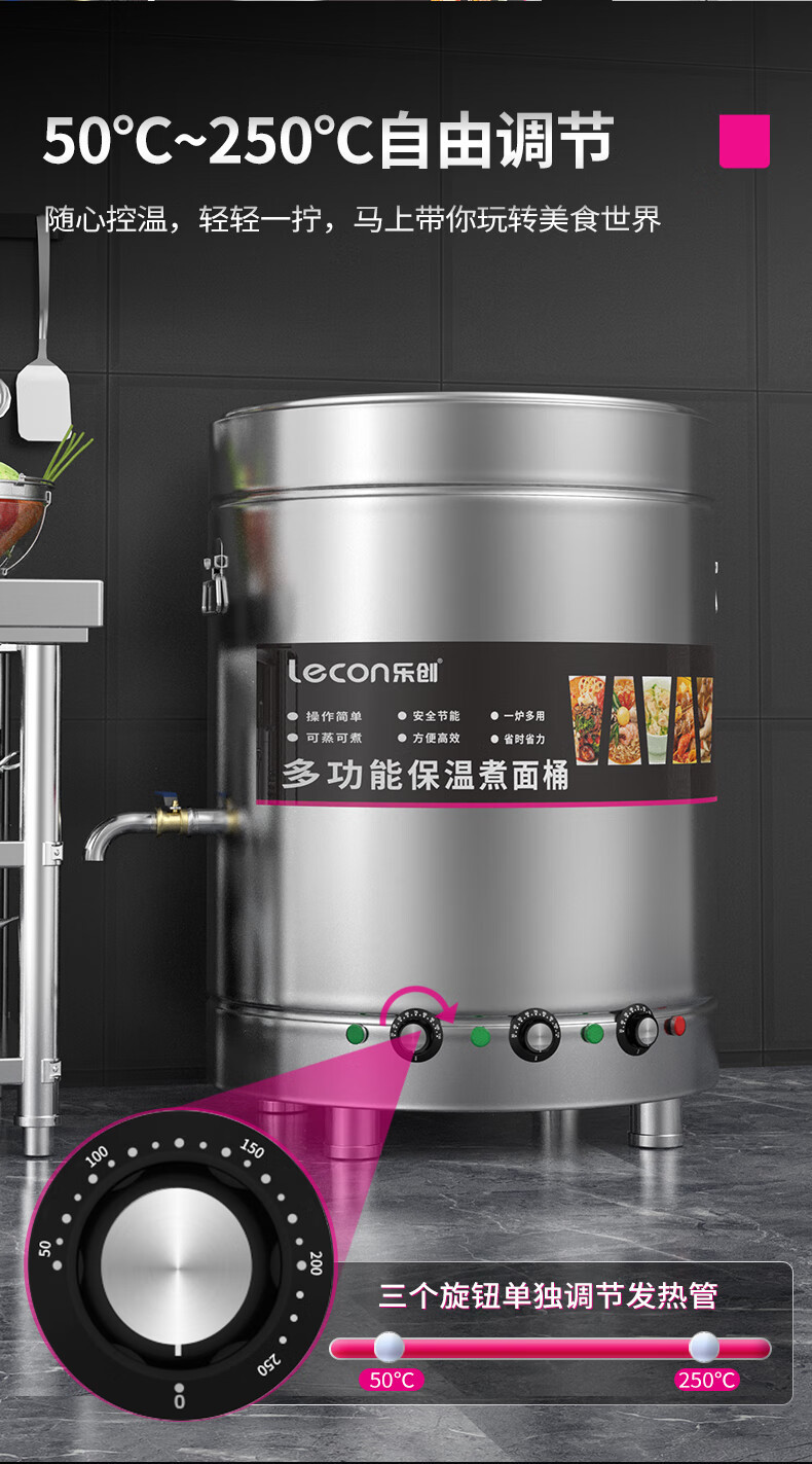 乐创商用煮面炉燃气煮面桶不锈钢汤桶煮粥炉早餐店食堂汤粉炉(40型燃气圆管煮面桶)