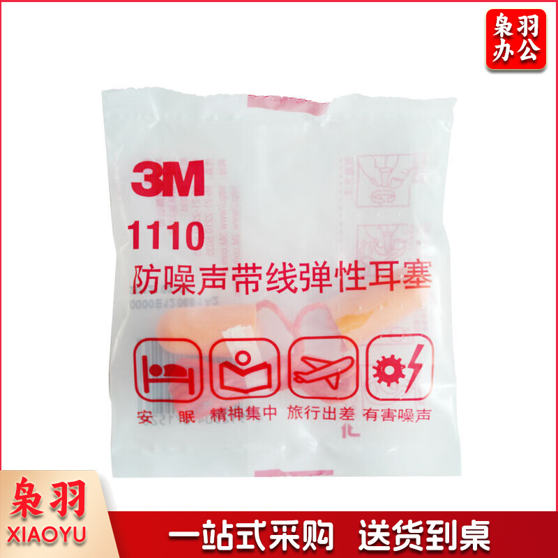 3M 1110发泡弹性子弹型隔音耳塞带挂绳可搭配隔音耳罩使用100副装头部防护