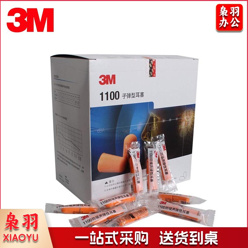3M 1100降噪耳塞 隔音耳塞 子弹型不带线耳塞SNR37db 抗噪防噪音 睡觉工作学习入耳式耳塞 200副/盒头部防护