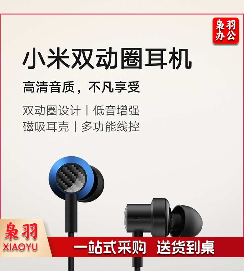 小米(MI) 双动圈耳机 运动耳机有线入耳式3.5mm 手机耳机华为苹果通用 蓝色 小米双动圈耳机蓝色