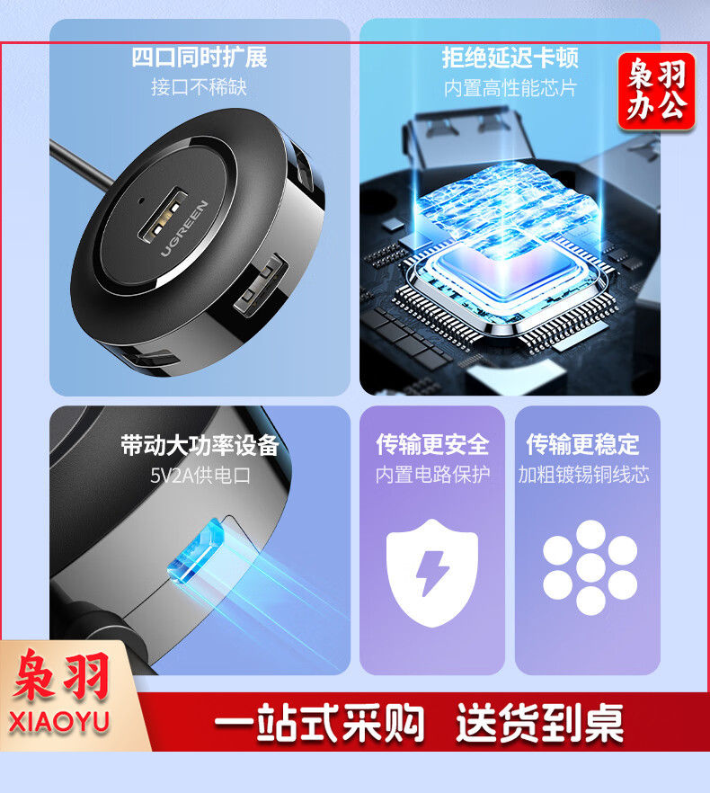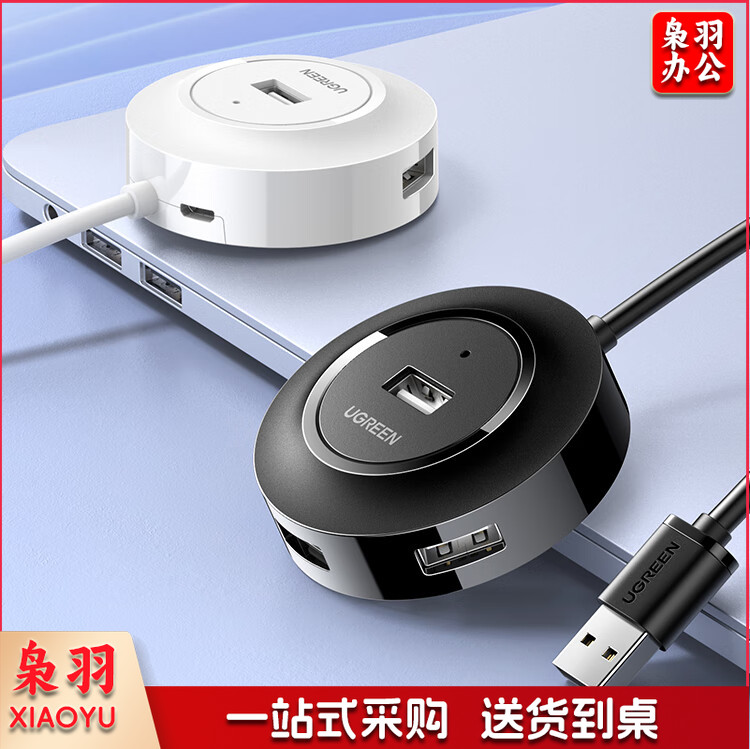 绿联(UGREEN)30254 USB分线器2.0 4口HUB集线器扩展坞 笔记本电脑一拖四转换器多接口延长线带供电口 黑 0.5米