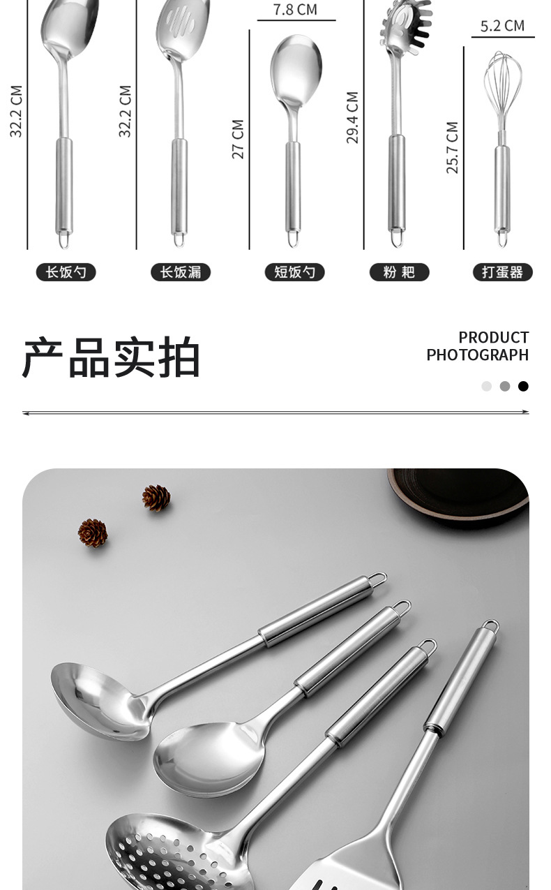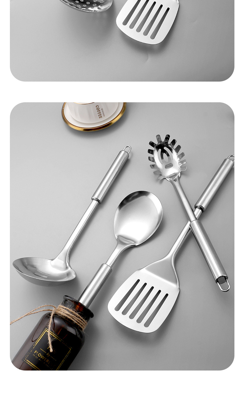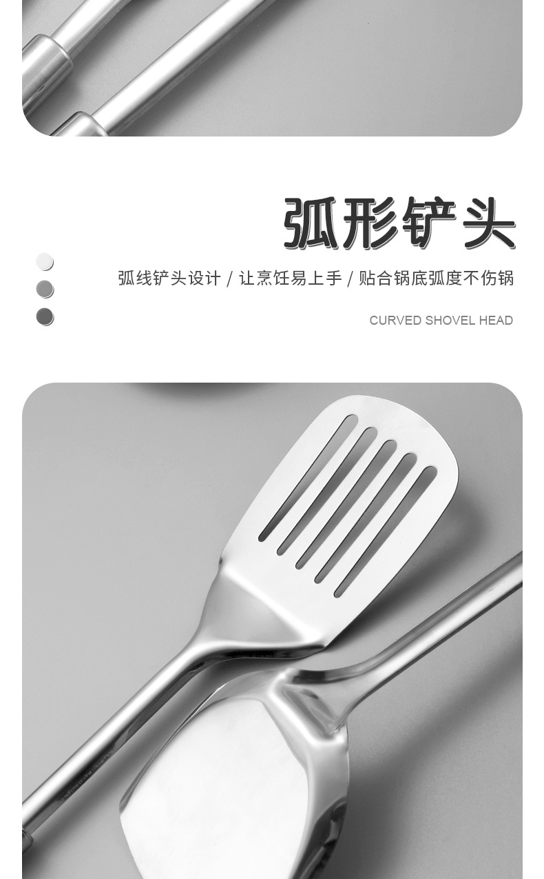不锈钢锅铲厨具带磁0.8mm厨房炒菜铲煎铲酒店餐厅漏勺火锅勺套装(单个任选)